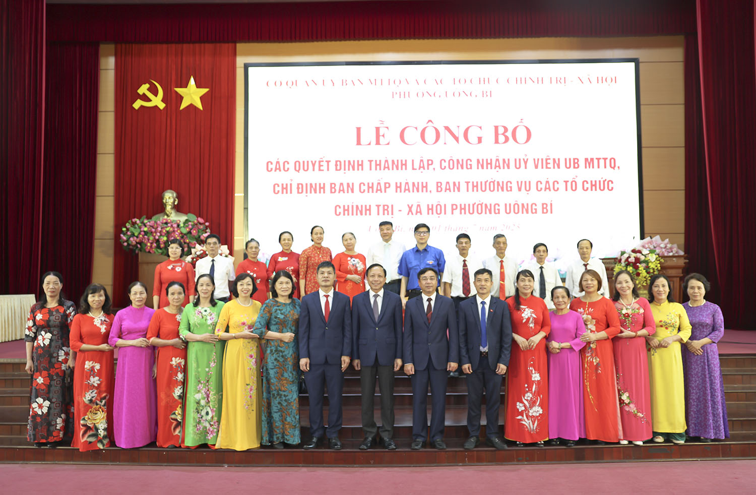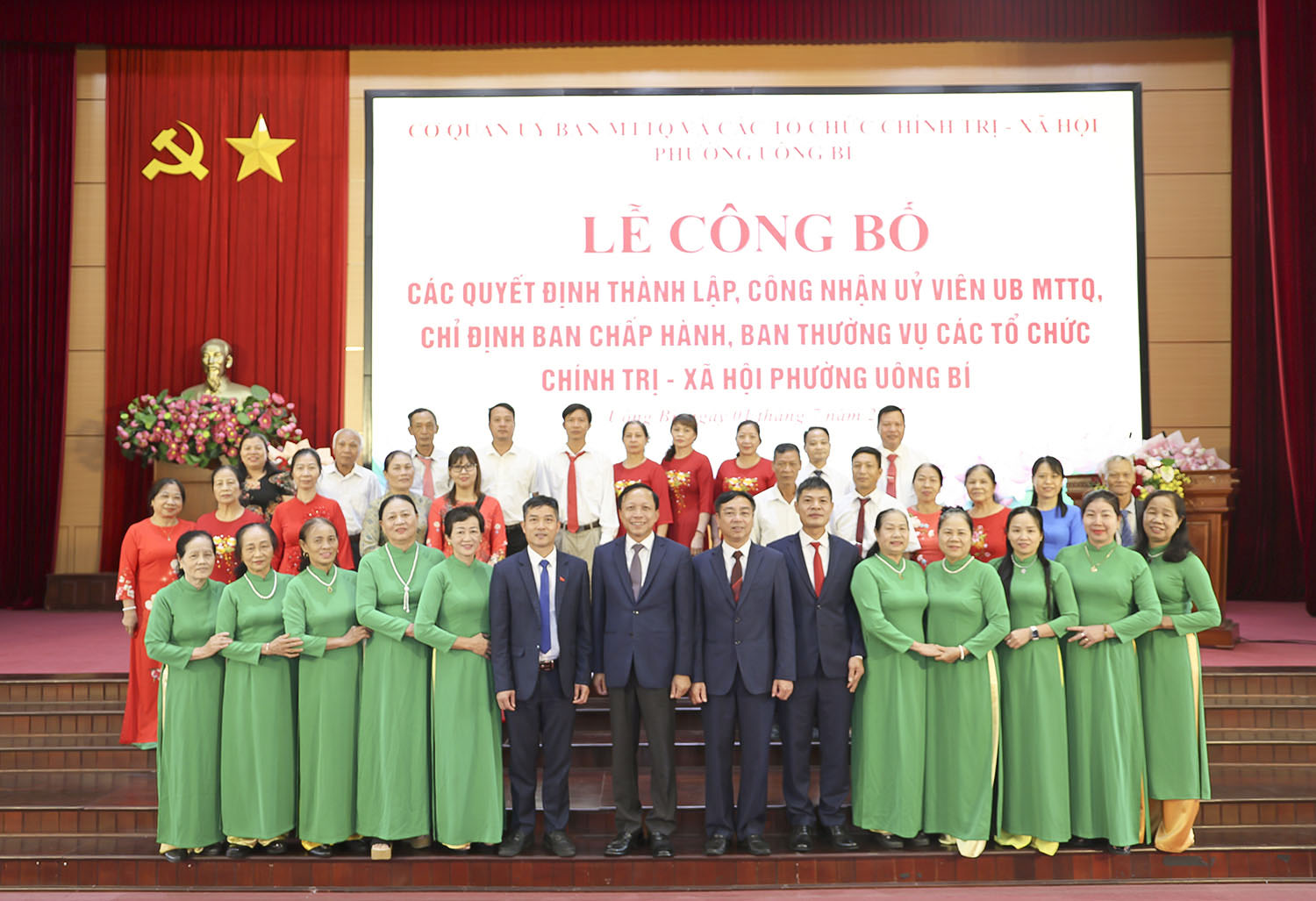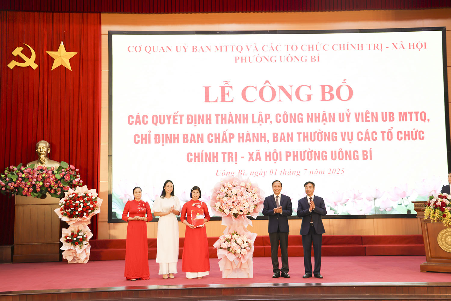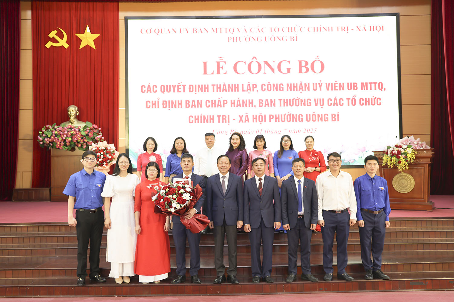 Ngày 01/7, tại Trung tâm tổ chức hội nghị phường Uông Bí đã diễn ra lễ công bố các quyết định thành lập, công nhận Ủy viên Ủy ban MTTQ và chỉ định Ban Chấp hành, Ban Thường vụ các tổ chức chính trị - xã hội của phường. Dự hội nghị có các đồng chí: Nguyễn Chiến Thắng, Bí thư Đảng ủy, Chủ tịch Hội đồng Nhân dân phường; Đào Ngọc Sơn, Phó Bí thư Thường trực Đảng ủy phường.