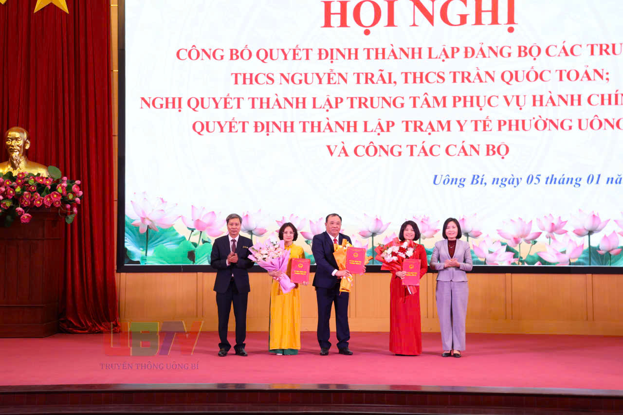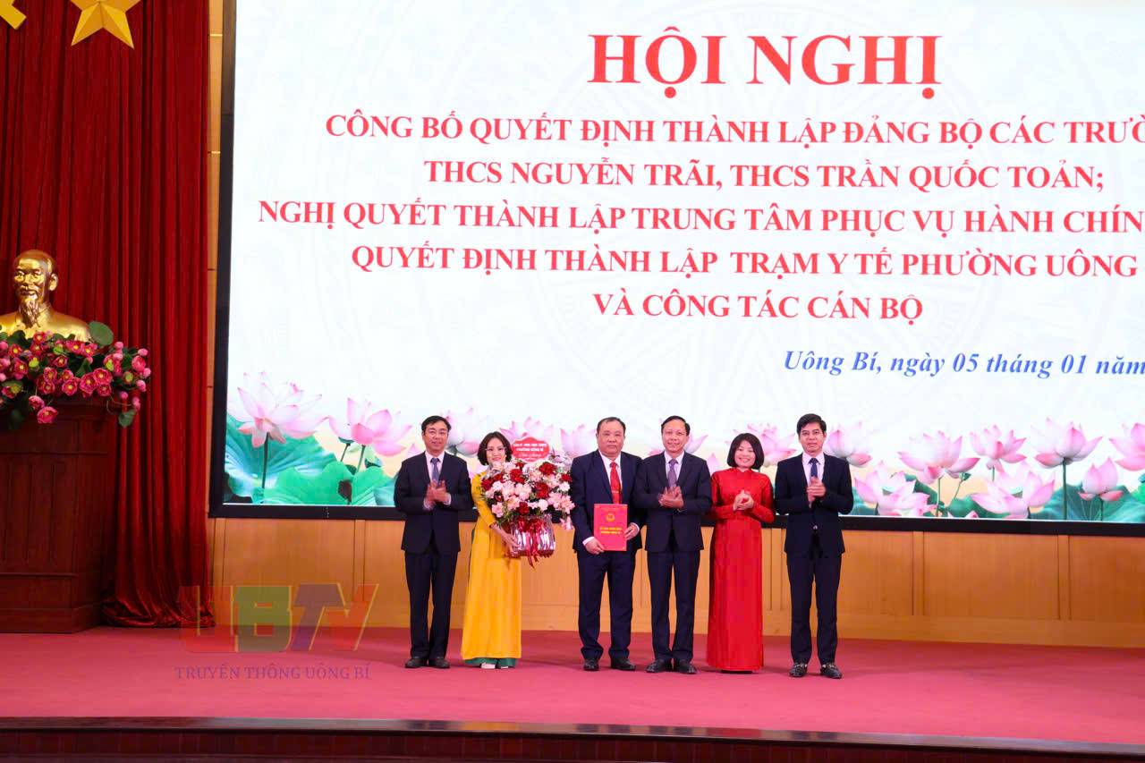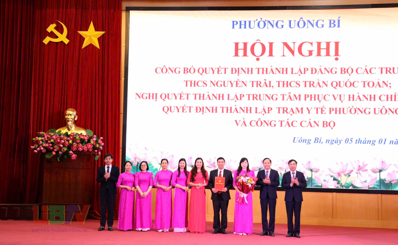 Tại hội nghị, phường Uông Bí đã công bố Quyết định thành lập Đảng bộ cơ sở Trường THCS Nguyễn Trãi trực thuộc Đảng bộ phường, gồm 2 chi bộ trực thuộc với 67 đảng viên. Đảng ủy phường Chỉ định đồng chí Lê Thị Thanh Xuân, Hiệu Trưởng trường THCS Nguyễn Trãi giữ chức Bí thư Đảng ủy. Quyết định thành lập Đảng bộ cơ sở trường THCS Trần Quốc Toản trực thuộc Đảng bộ phường, gồm 4 chi bộ trực thuộc với 65 đảng viên. Chỉ định đồng chí Nguyễn Quốc Phong, Hiệu Trưởng trường THCS Trần Quốc Toản giữ chức Bí thư Đảng ủy.