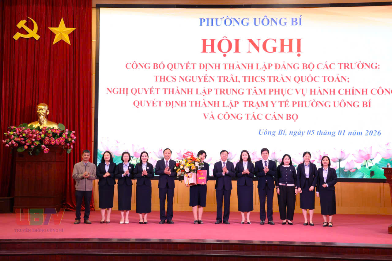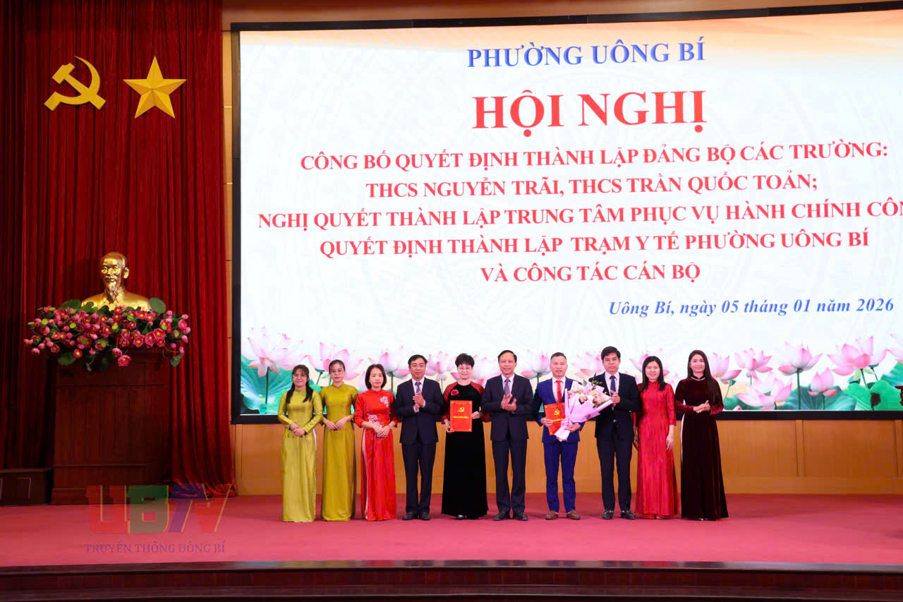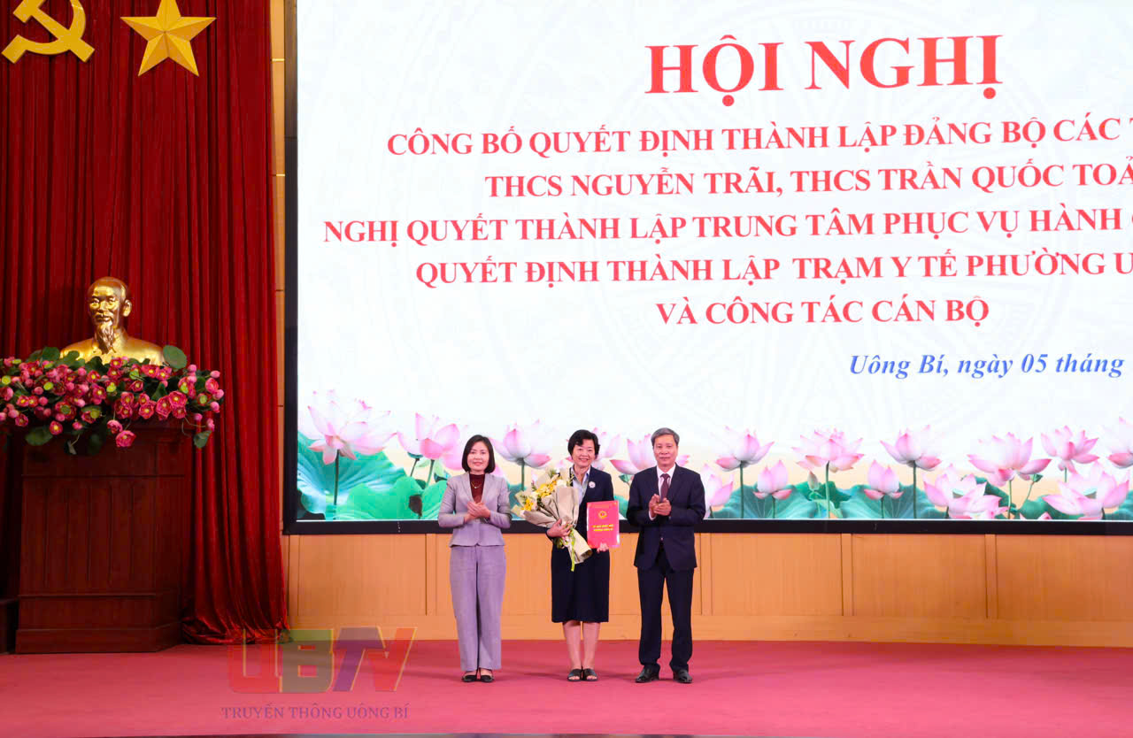 Tại hội nghị, phường Uông Bí đã công bố Quyết định thành lập Đảng bộ cơ sở Trường THCS Nguyễn Trãi trực thuộc Đảng bộ phường, gồm 2 chi bộ trực thuộc với 67 đảng viên. Đảng ủy phường Chỉ định đồng chí Lê Thị Thanh Xuân, Hiệu Trưởng trường THCS Nguyễn Trãi giữ chức Bí thư Đảng ủy. Quyết định thành lập Đảng bộ cơ sở trường THCS Trần Quốc Toản trực thuộc Đảng bộ phường, gồm 4 chi bộ trực thuộc với 65 đảng viên. Chỉ định đồng chí Nguyễn Quốc Phong, Hiệu Trưởng trường THCS Trần Quốc Toản giữ chức Bí thư Đảng ủy.