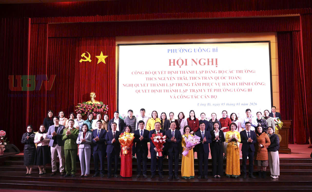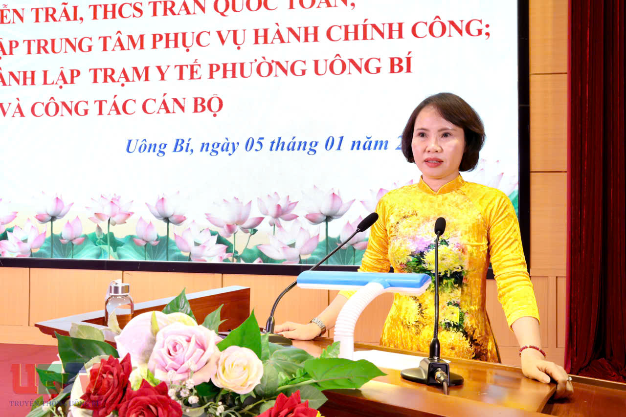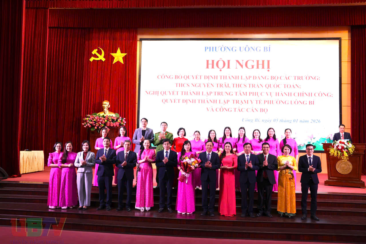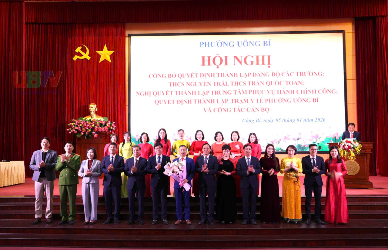 Chiều ngày 05/01, phường Uông Bí tổ chức Hội nghị công bố các quyết định về việc thành lập Đảng bộ các trường THCS Nguyễn Trãi, THCS Trần Quốc Toản; Nghị quyết thành lập Trung tâm Phục vụ hành chính công phường; Quyết định thành lập Trạm Y tế phường và các nội dung liên quan đến công tác cán bộ.