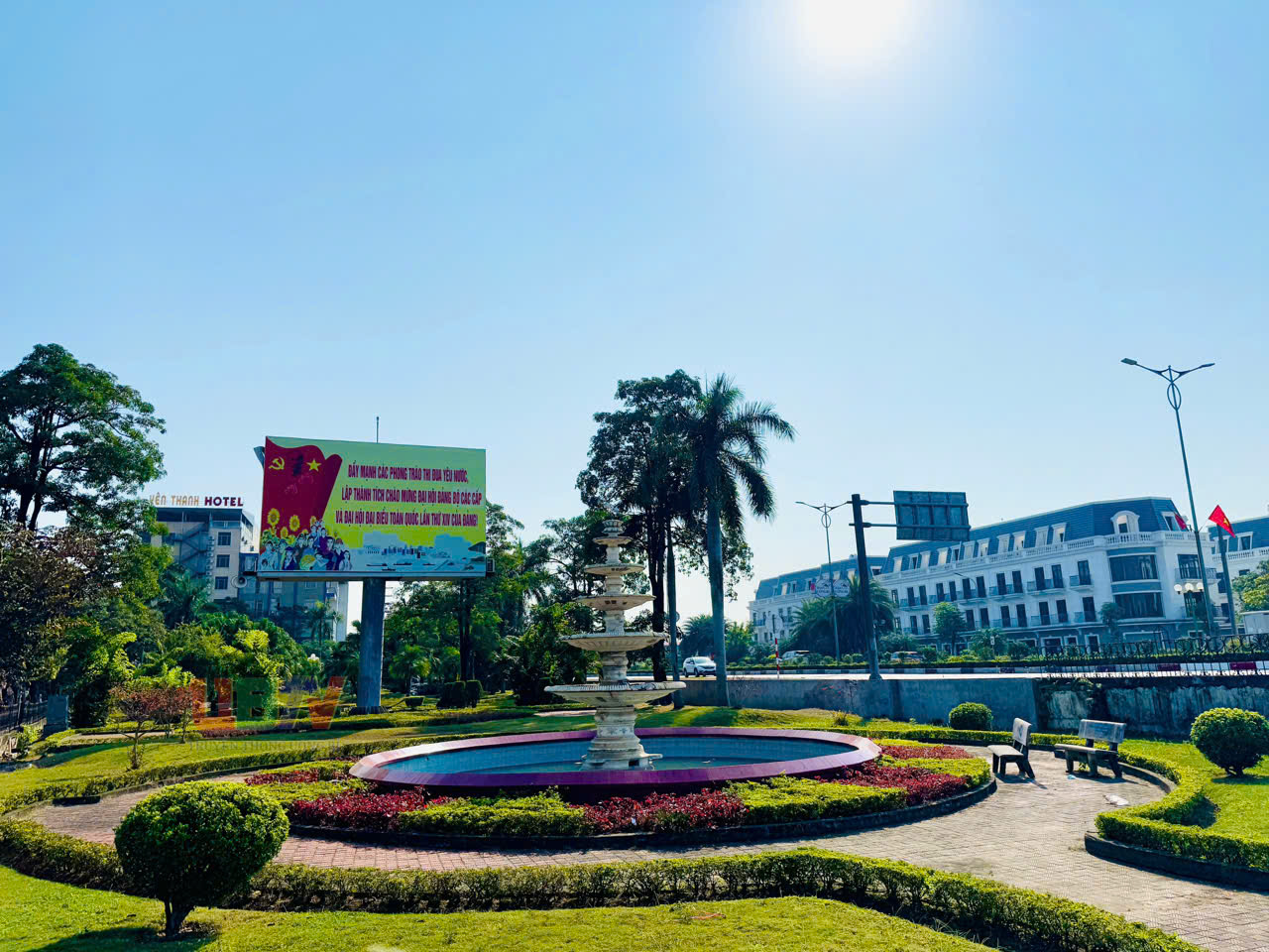 Không khí tuyên truyền hướng tới Đại hội XIV của Đảng tại khu trung tâm hành chính phường Uông Bí.