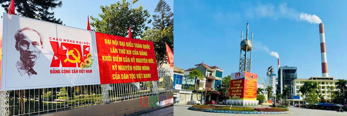 Trên các tuyến đường chính, khu trung tâm, trụ sở cơ quan, đơn vị và tại các khu dân cư, cờ Đảng, cờ Tổ quốc, băng rôn, khẩu hiệu tuyên truyền được treo trang trọng, nổi bật, góp phần lan tỏa sâu rộng ý nghĩa, tầm quan trọng của Đại hội.