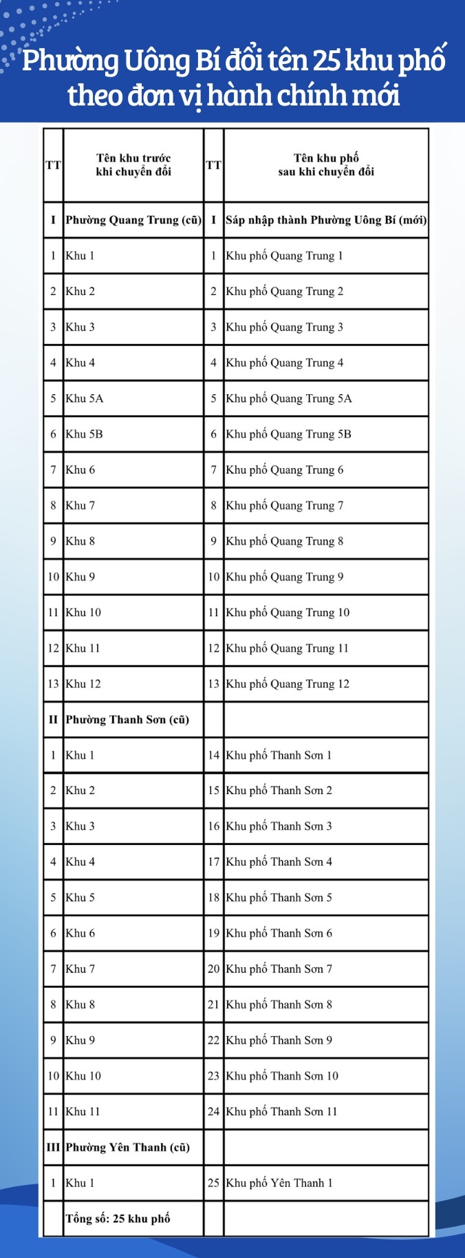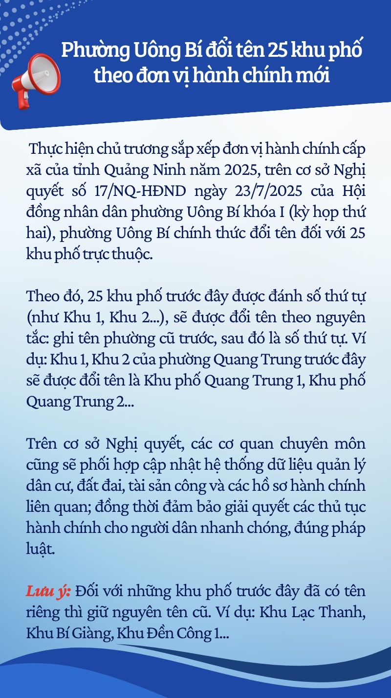 Phường Uông Bí đổi tên 25 khu phố theo đơn vị hành chính mới