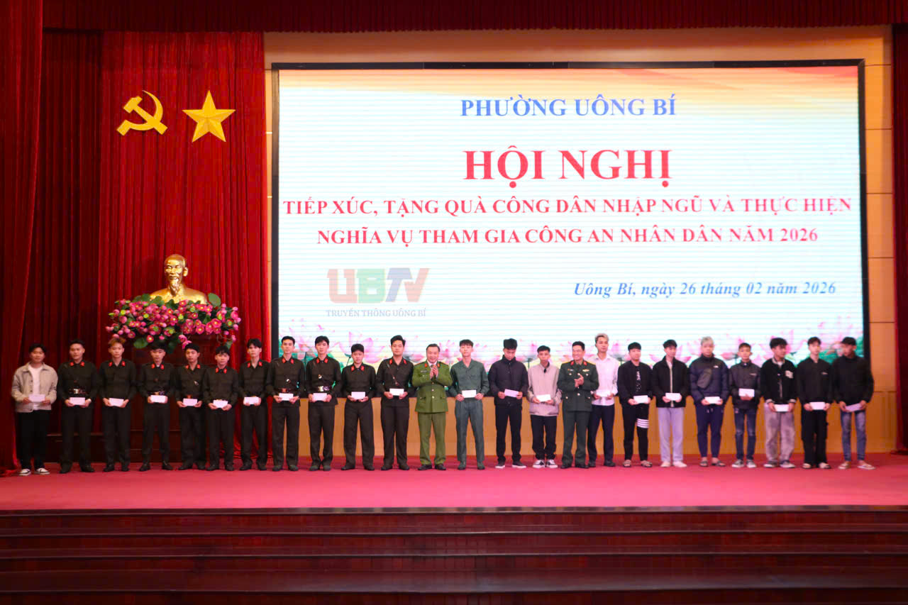 Chiều 26/2, phường Uông Bí trang trọng tổ chức gặp mặt, tặng quà công dân thực hiện nghĩa vụ Quân sự và thực hiện nghĩa vụ tham gia Công an nhân dân năm 2026.