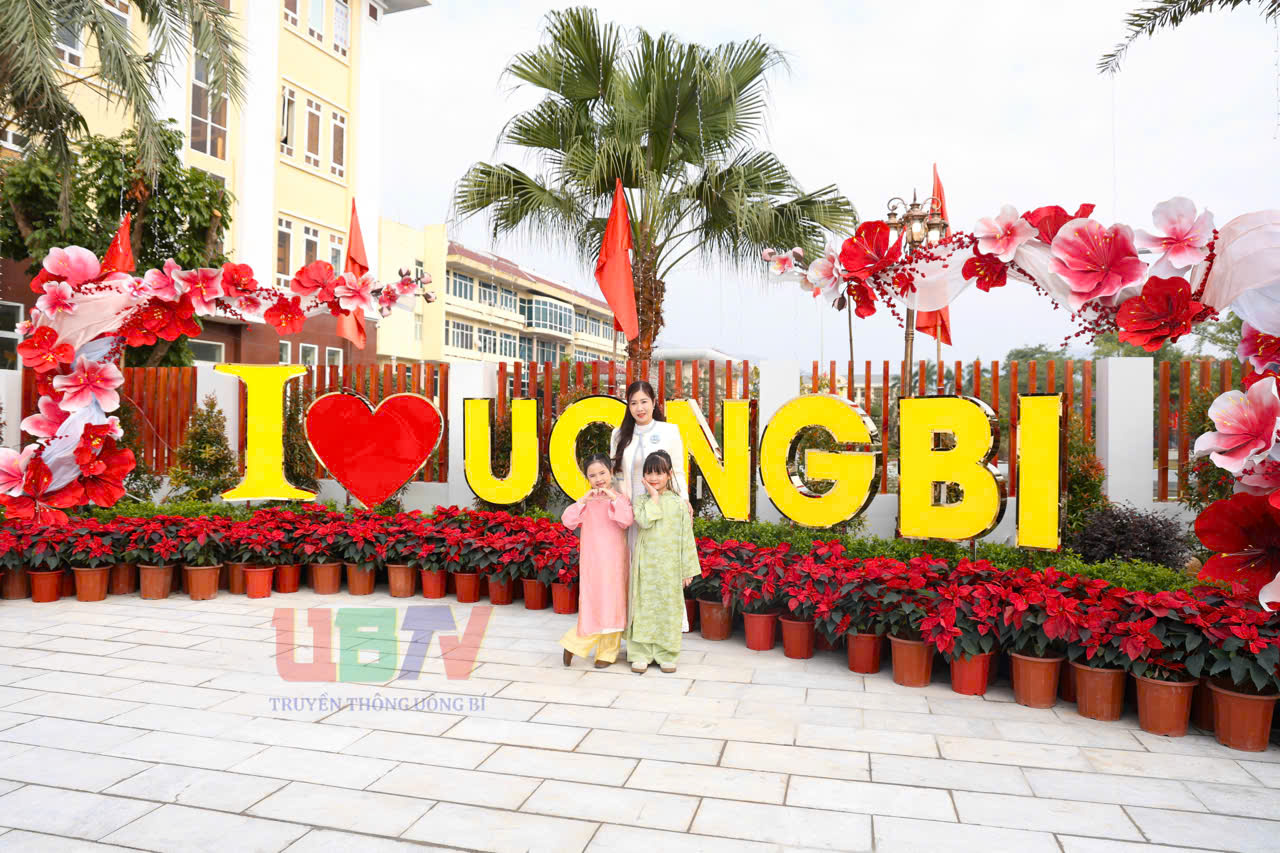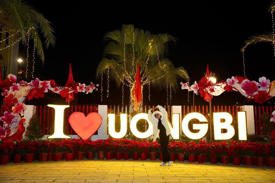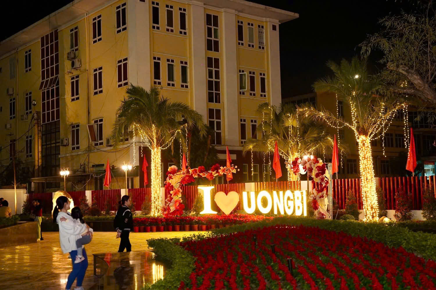 Người dân hào hứng check-in tại vườn hoa Hoà Bình. Ảnh: Fanpage Uông Bí 24h