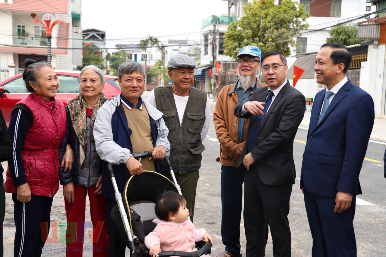 Đại biểu cắt băng khánh thành công trình Dự án nâng cấp, cải tạo ngõ 01, 02 phố Trần Quang Khải và tuyến đấu nối Hoàng Quốc Việt.