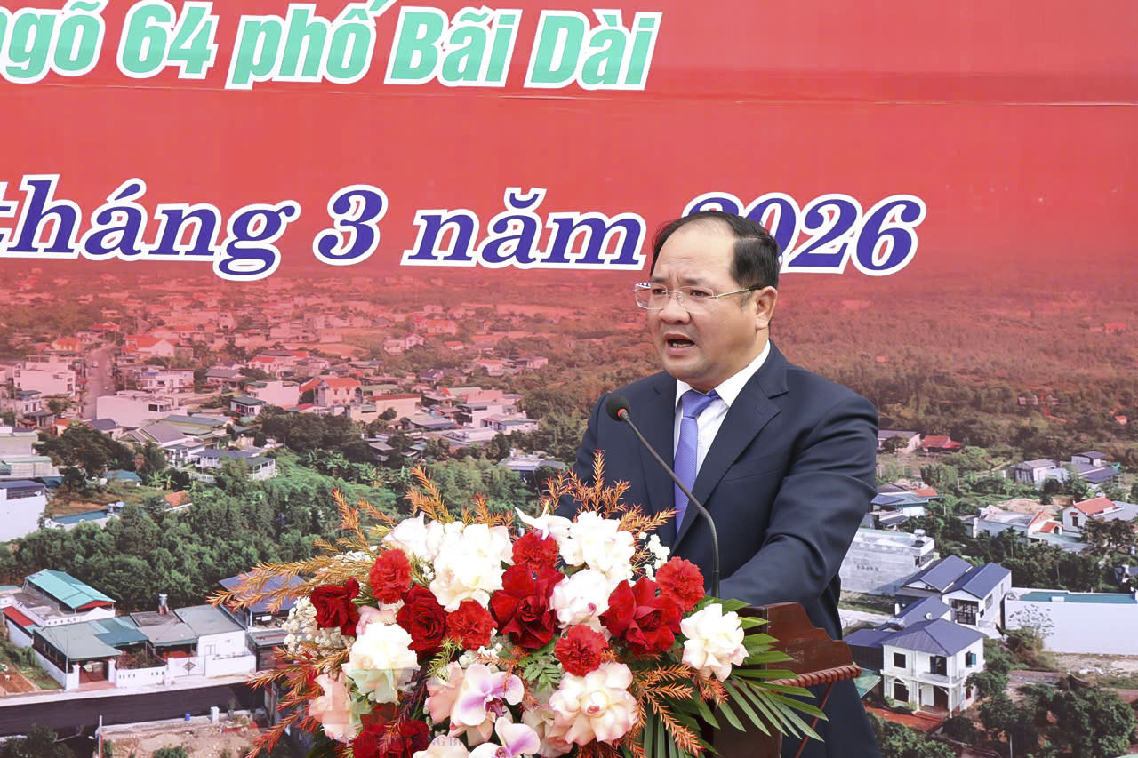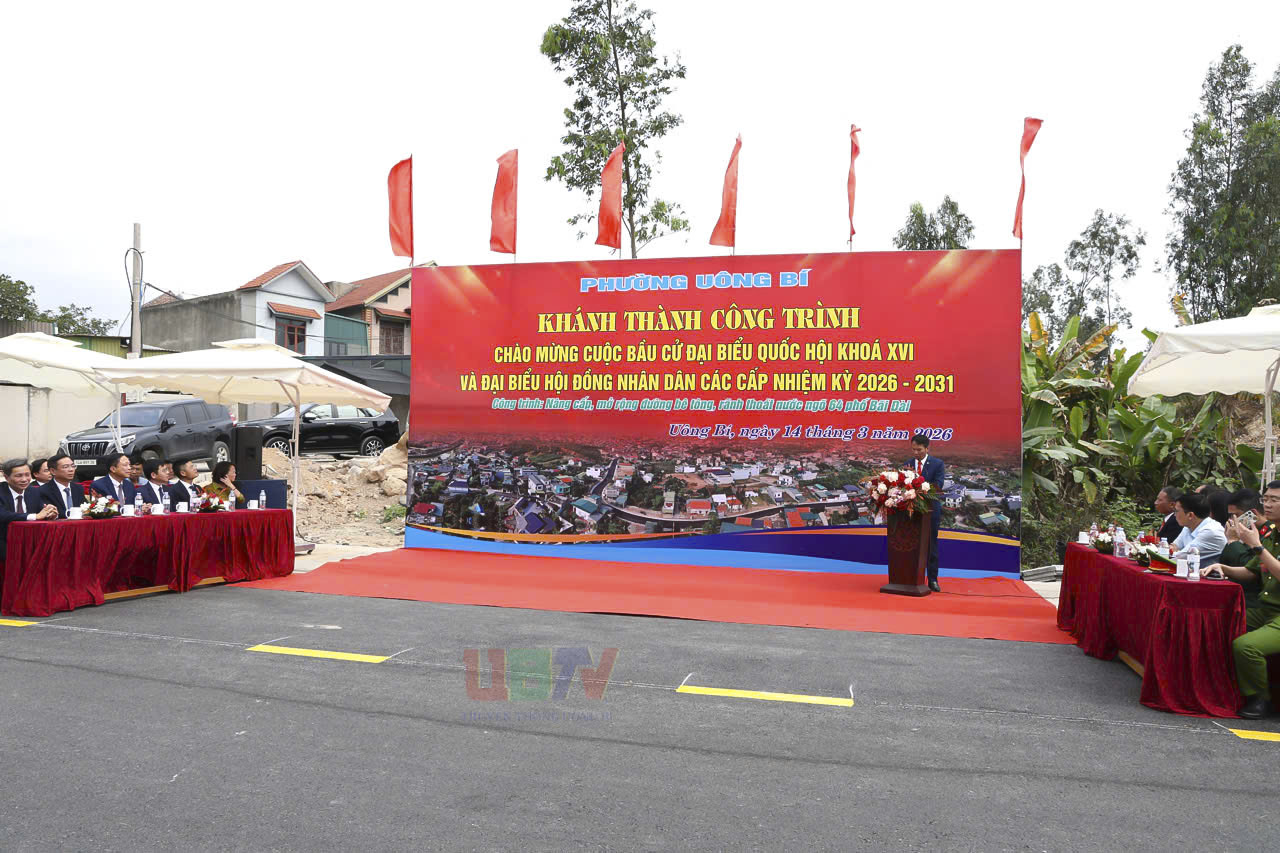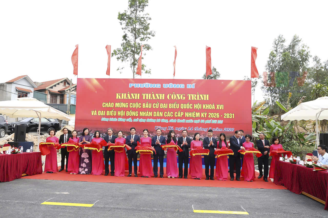 Trong không khí thi đua sôi nổi chào mừng cuộc bầu cử đại biểu Quốc hội khóa XVI và đại biểu HĐND các cấp nhiệm kỳ 2026–2031, chiều ngày 14/03, phường Uông Bí long trọng tổ chức khánh thành công trình nâng cấp, mở rộng đường bê tông và rãnh thoát nước ngõ 64 phố Bãi Dài (tổ 3, 4, 5 khu Thanh Sơn 9). Dự chương trình có đồng chí Nguyễn Chiến Thắng, Bí thư Đảng uỷ, Chủ tịch HĐND phường; đồng chí Đào Ngọc Sơn, Phó Bí thư Thường trực Đảng uỷ phường; đồng chí Nguyễn Đức Hòa, Phó Bí thư Đảng uỷ, Chủ tịch UBND phường. Cùng dự có lãnh đạo các ban Đảng, lãnh đạo HĐND, UBND, Ủy ban MTTQ và các đoàn thể chính trị xã hội phường, đại diện khu Thanh Sơn 9, các cơ quan đơn vị, doanh nghiệp trên địa bàn.
