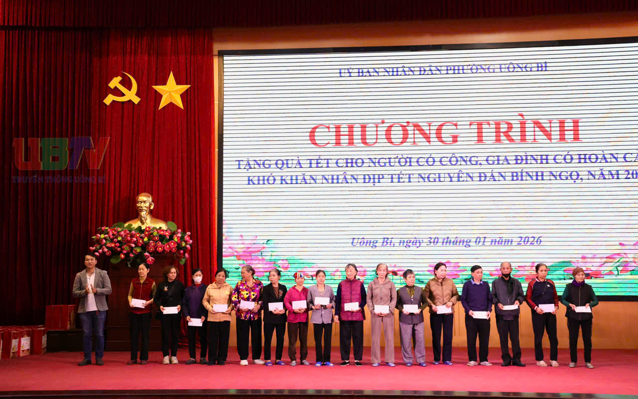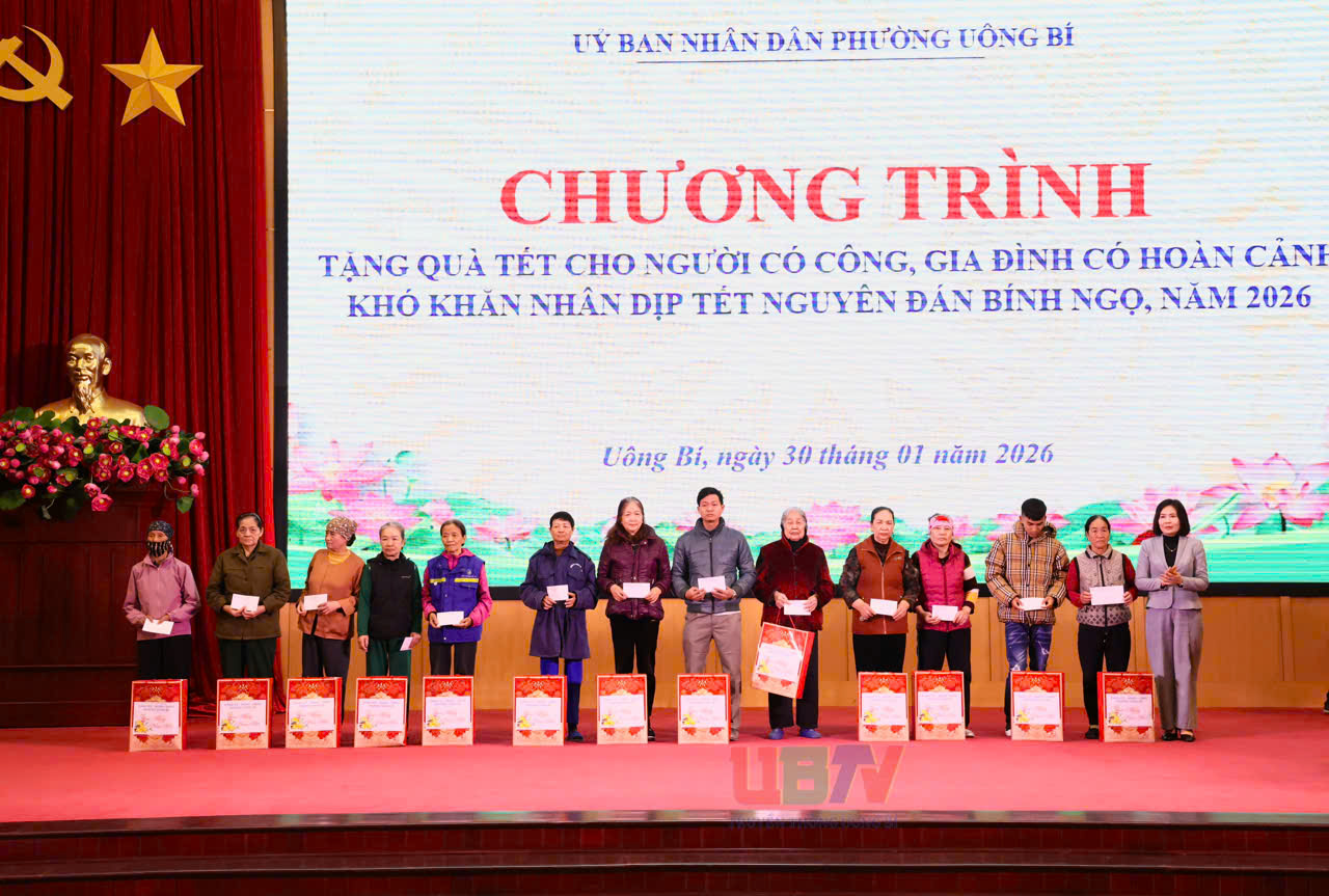 Trong không khí phấn khởi đón Tết Nguyên đán Bính Ngọ năm 2026, ngày 30/01, phường Uông Bí đã phối hợp cùng các cơ quan, đơn vị, doanh nghiệp và các nhà hảo tâm tổ chức chương trình “Tết nhân ái, Tết yêu thương”, trao tặng quà Tết tới người có công với cách mạng và các hộ gia đình có hoàn cảnh khó khăn trên địa bàn.