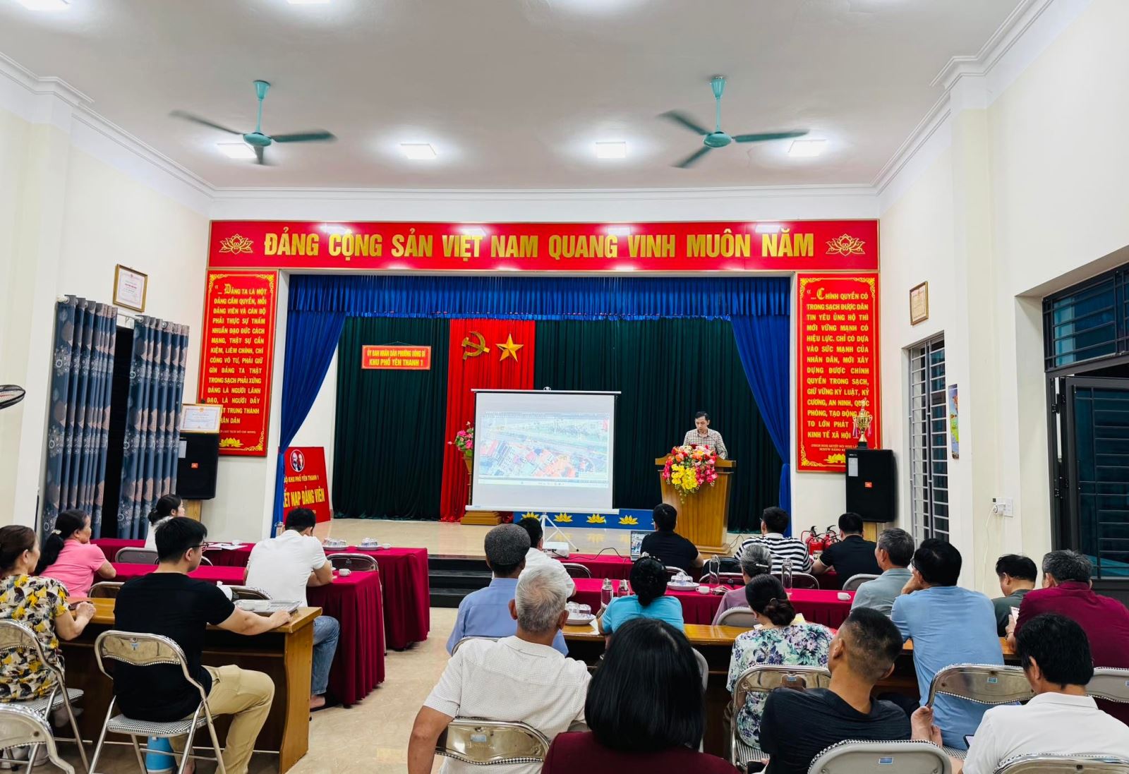 Tối ngày 22/4/2026, tại nhà văn hoá Yên Thanh 1, UBND phường Uông Bí tổ chức cuộc họp thông tin và lấy ý kiến nhân dân về chủ trương thực hiện dự án cải tạo, chỉnh trang ngõ 39, phố Trần Nhân Tông.