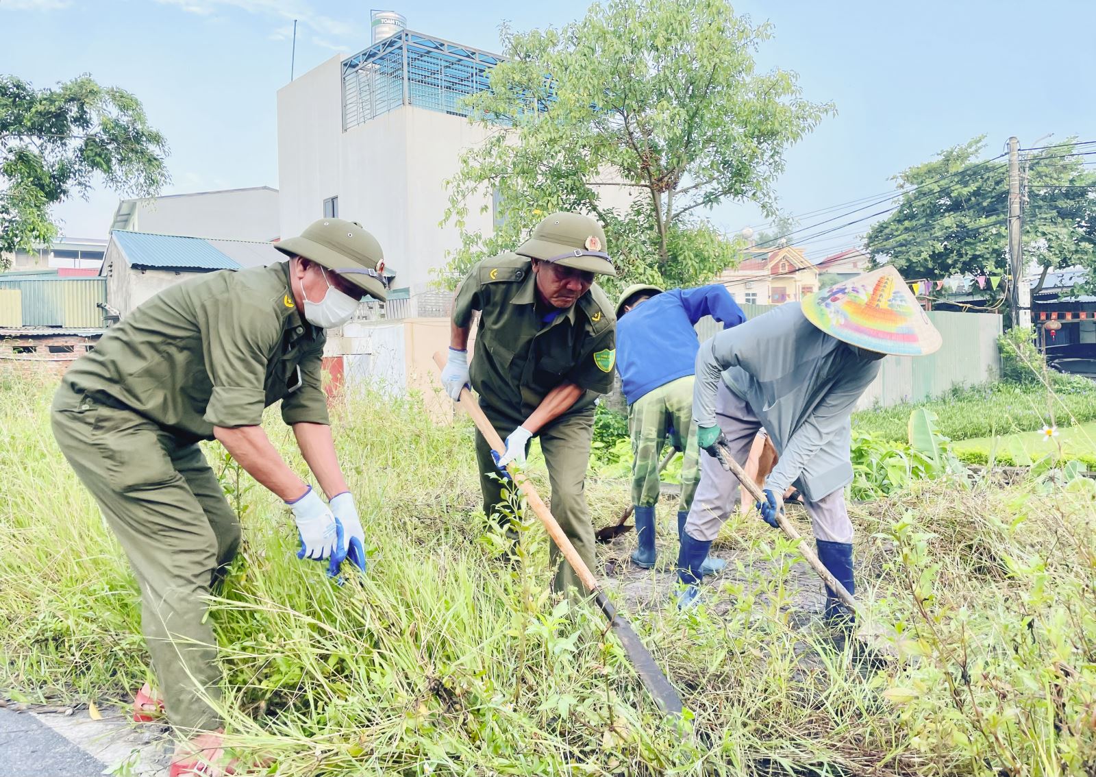 Ngay từ sáng sớm 26/7 - ngày đầu ra quân, các lực lượng trên 300 người là cán bộ, chiến sĩ Trung đoàn 244, Bộ Chỉ huy quân sự tỉnh, Tiểu đoàn 16/Sư đoàn 395, Ban lãnh đạo các khu dân cư, lực lượng an ninh cơ sở, các đoàn thể, Nhân dân, công nhân viên các Công ty Than, Công ty TNHH Thanh Thảo Quảng Ninh đã tập trung triển khai công tác thu gom rác thải, cây cối, xử lý 10 khu vực thường xuyên tù đọng nước, ngập úng cục bộ mỗi khi xảy ra mưa bão. Địa phương cũng huy động 8 máy xúc, 13 ô tô tiến hành nạo vét kênh mương, thu dọn cây cối gãy đổ, rác thải khơi thông dòng chảy các kênh mương thoát nước. Với tinh thần làm tới đâu, gọn gàng, sạch sẽ tới đó, công tác phối hợp dọn vệ sinh được triển khai nhịp nhàng, trách nhiệm, hiệu quả.