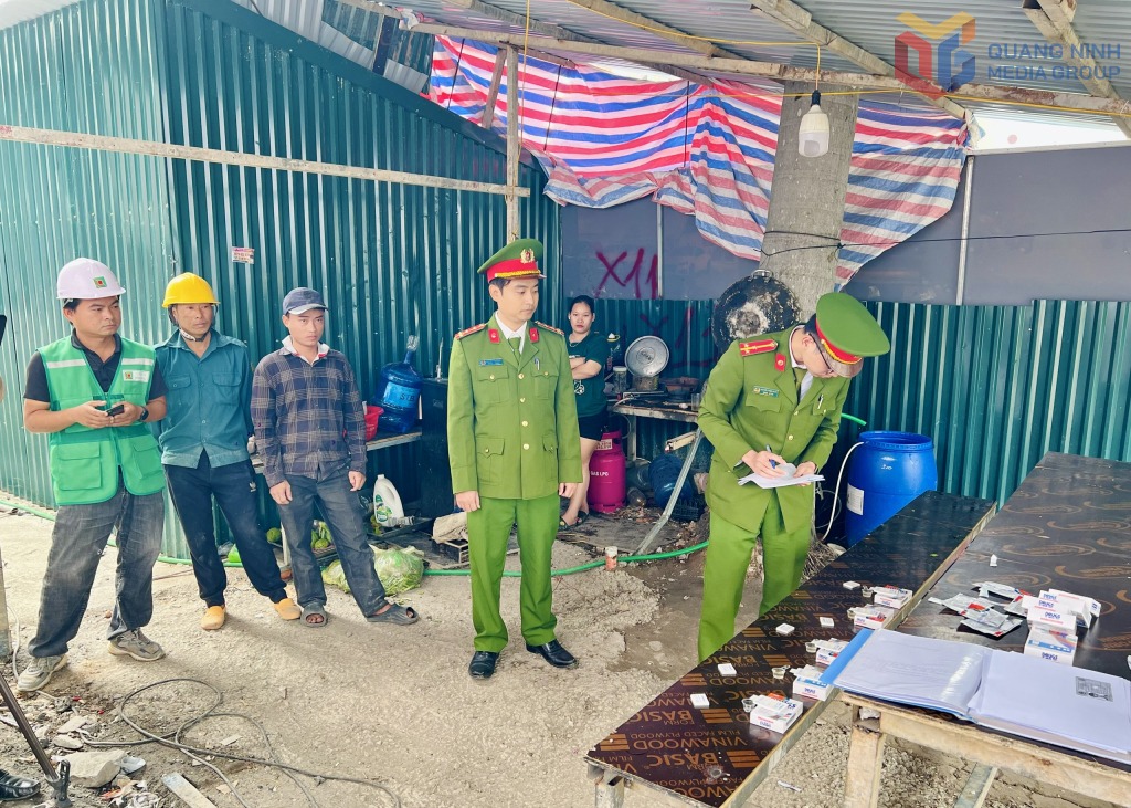 Việc test ma túy đối với công nhân xây dựng tại các lán, trại được Công an phường Uông Bí triển khai thường xuyên.