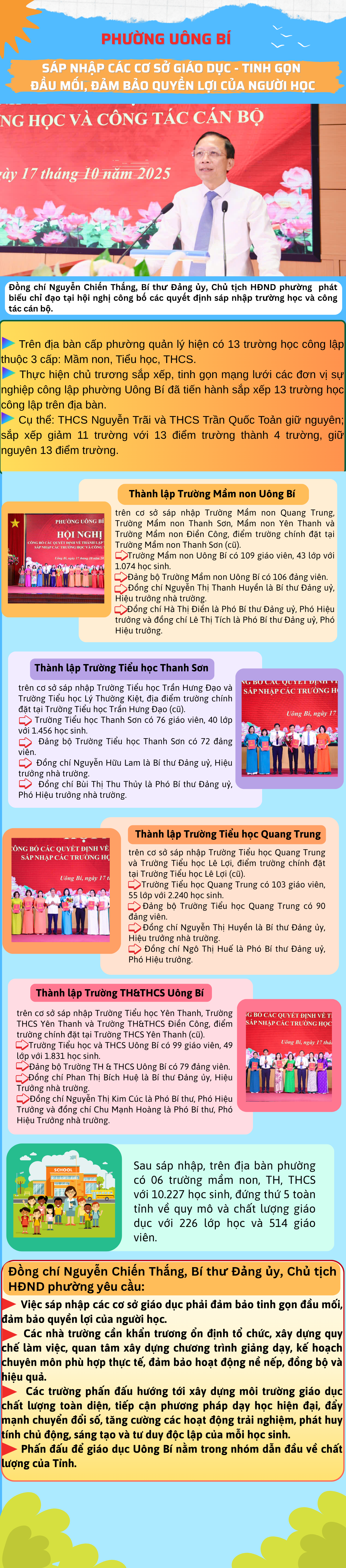 PHƯỜNG UÔNG BÍ: SÁP NHẬP CÁC CƠ SỞ GIÁO DỤC - TINH GỌN ĐẦU MỐI, ĐẢM BẢO QUYỀN LỢI CỦA NGƯỜI HỌC