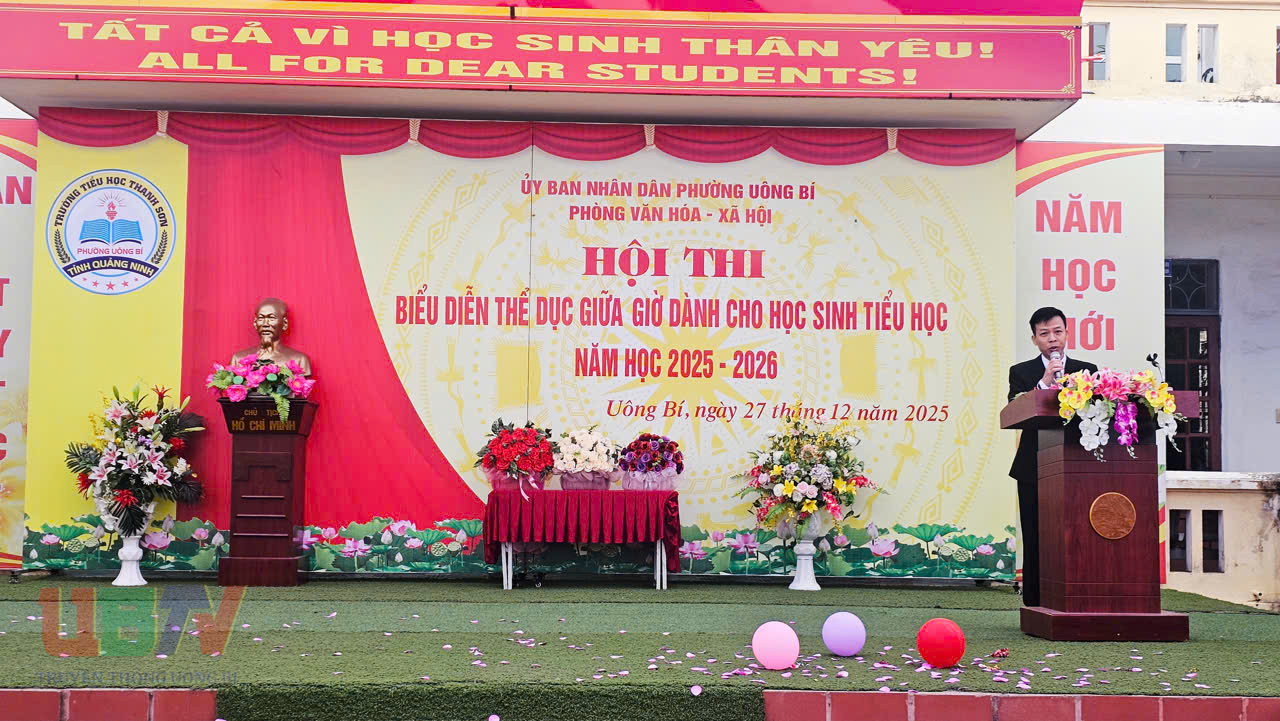Sáng ngày 27/12, phường Uông Bí đã sôi nổi tổ chức Hội thi biểu diễn thể dục giữa giờ dành cho học sinh tiểu học năm học 2025-2026. Đây là sân chơi bổ ích nhằm nâng cao sức khỏe, tạo tinh thần thoải mái cho học sinh sau những giờ học căng thẳng, đồng thời góp phần đẩy mạnh phong trào “Toàn dân rèn luyện thân thể theo gương Bác Hồ vĩ đại” trong học đường.