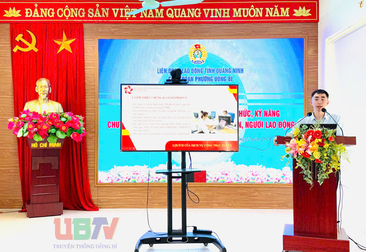 Ngày 02/12/2025, Công đoàn phường Uông Bí tổ chức Hội nghị tập huấn công tác bình dân học vụ số, bồi dưỡng kỹ năng chuyển đổi số và báo cáo nhanh kết quả Đại hội Công đoàn tỉnh Quảng Ninh lần thứ XV, nhiệm kỳ 2025–2030. Dự và trực tiếp truyền đạt nội dung tập huấn có đồng chí Nguyễn Văn Toàn – Phó phòng Tiếp nhận và số hoá hồ sơ, giải quyết thủ tục hành chính – Trung tâm Phục vụ hành chính công tỉnh Quảng Ninh.