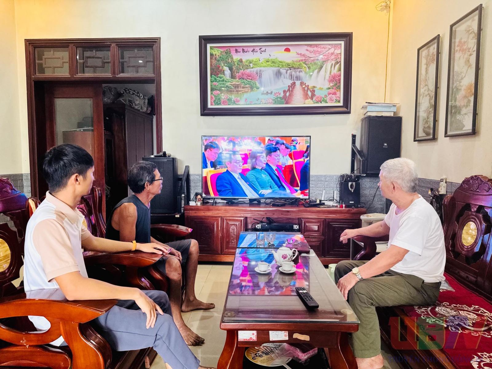 Người dân phường Uông Bí mở sóng truyền hình theo dõi tại nhà Khai mạc Đại hội đại biểu Đảng bộ tỉnh Quảng Ninh lần thứ XVI.
