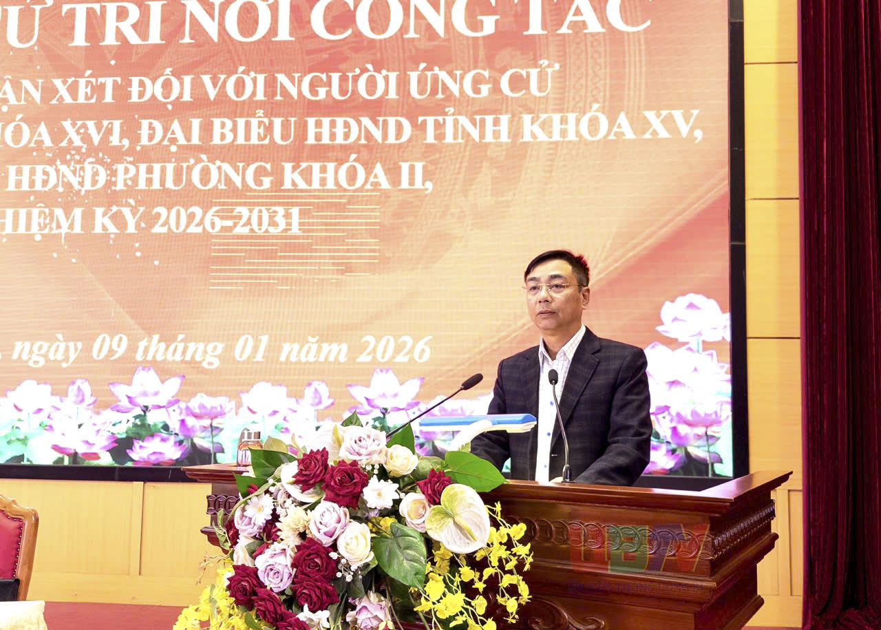 Ngày 09/01, đồng chí Đào Ngọc Sơn, Phó Bí thư Thường trực Đảng uỷ phường chủ trì Hội nghị cử tri nơi công tác lấy ý kiến nhận xét đối với người ứng cử đại biểu Quốc hội khóa XVI, đại biểu HĐND tỉnh khóa XV và người được giới thiệu ứng cử đại biểu HĐND phường khóa II, nhiệm kỳ 2026–2031.
