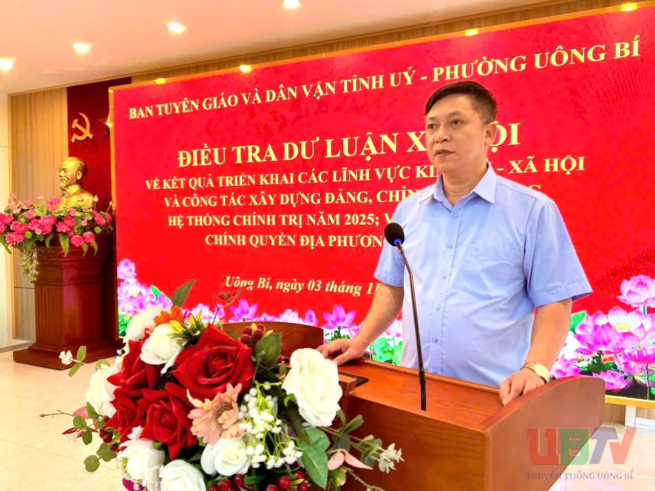 Nhằm đánh giá đúng thực trạng dư luận Nhân dân về công tác lãnh đạo, chỉ đạo, điều hành của các cấp ủy Đảng, chính quyền trong triển khai thực hiện các nhiệm vụ phát triển kinh tế - xã hội, công tác xây dựng, chỉnh đốn Đảng và hệ thống chính trị năm 2025, sáng 3/11, tại Hội trường Trung tâm Chính trị Uông Bí, Ban Tuyên giáo và Dân vận Tỉnh ủy phối hợp với Đảng ủy phường Uông Bí tổ chức Hội nghị điều tra dư luận xã hội trực tiếp về kết quả triển khai các lĩnh vực kinh tế - xã hội, xây dựng Đảng, hệ thống chính trị và việc thực hiện mô hình chính quyền địa phương 2 cấp trên địa bàn tỉnh.