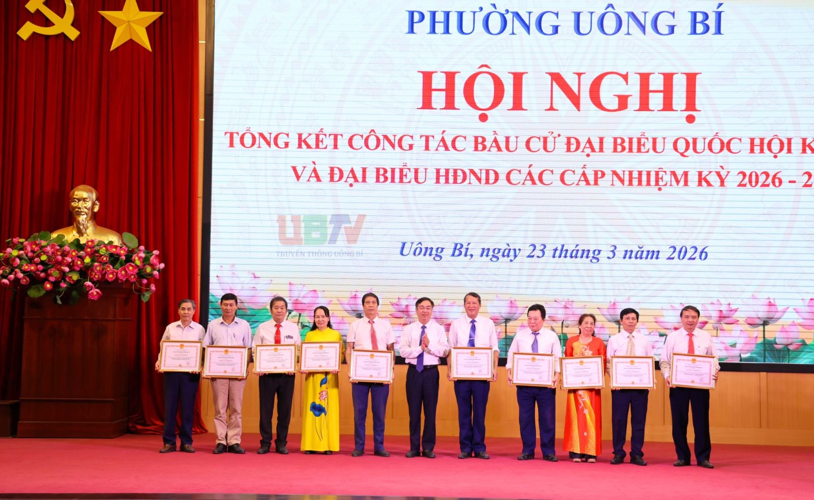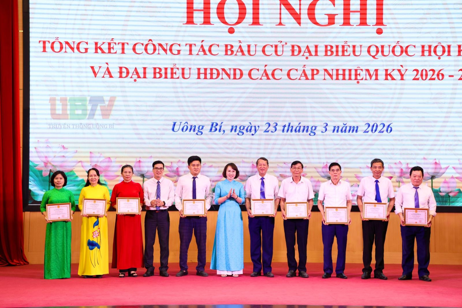 Nhân dịp này, phường Uông Bí đã khen thưởng 22 tập thể và 86 cá nhân có thành tích xuất sắc trong công tác bầu cử.