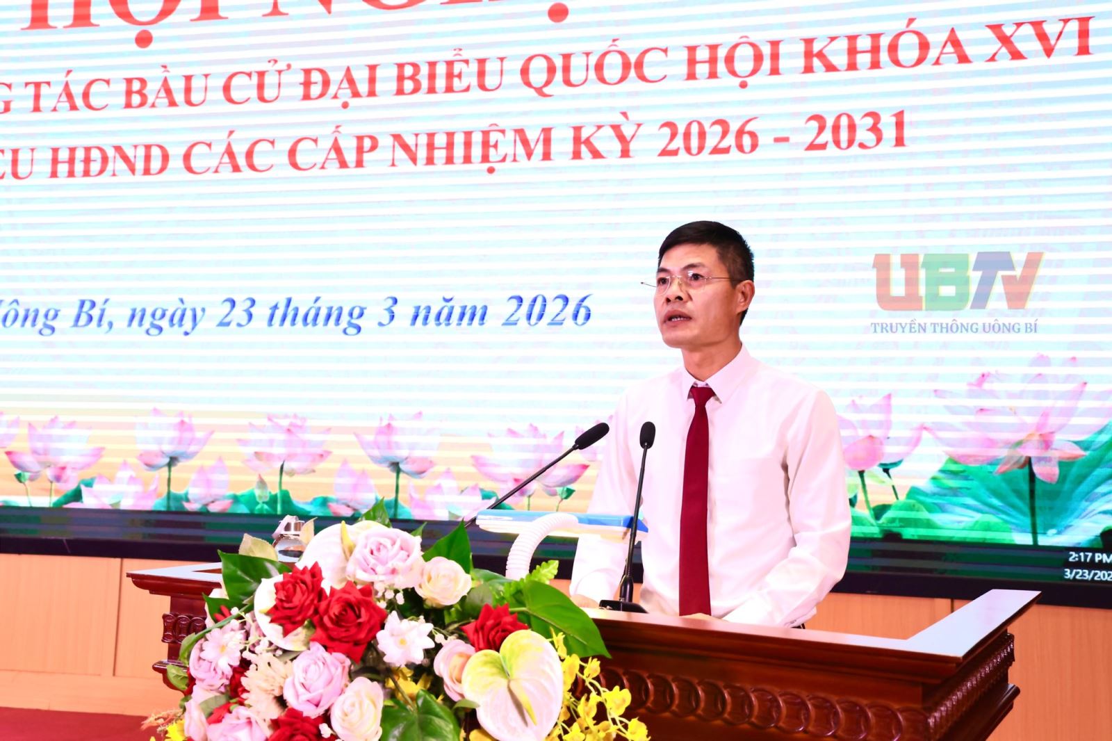 Ngày 23/3, phường Uông Bí tổ chức hội nghị tổng kết công tác bầu cử đại biểu Quốc hội khóa XVI và đại biểu HĐND các cấp nhiệm kỳ 2026–2031. Dự hội nghị có các đồng chí: Nguyễn Chiến Thắng, Bí thư Đảng ủy, Chủ tịch HĐND phường; Đào Ngọc Sơn, Phó Bí thư Thường trực Đảng ủy; Nguyễn Đức Hòa, Phó Bí thư Đảng ủy, Chủ tịch UBND phường cùng các đồng chí trong Thường trực Đảng ủy, HĐND, UBND, Ủy ban MTTQ và các tổ chức chính trị - xã hội.
