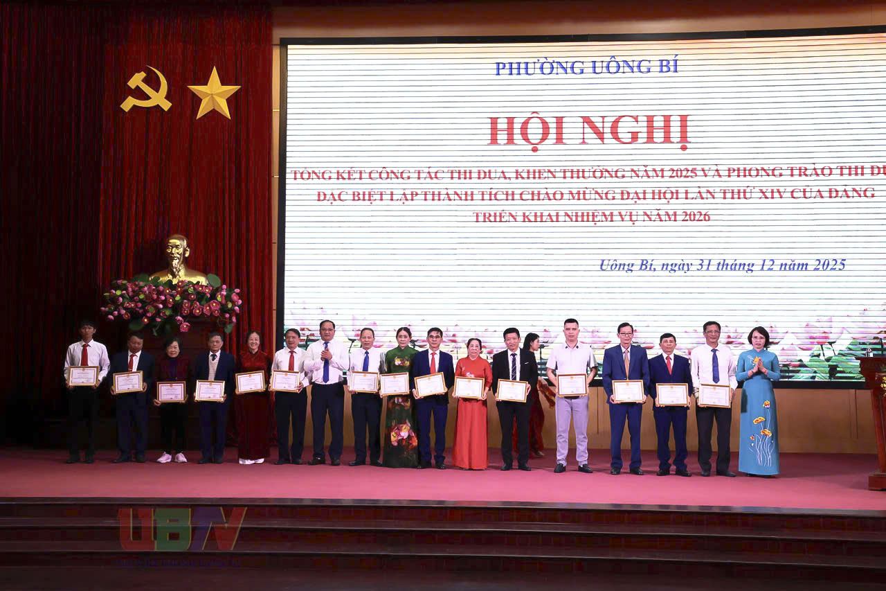 Ngày 31/12, phường Uông Bí long trọng tổ chức Hội nghị tổng kết công tác thi đua, khen thưởng năm 2025; triển khai nhiệm vụ năm 2026; tổng kết đợt thi đua và các phong trào thi đua đặc biệt lập thành tích chào mừng Đại hội đại biểu toàn quốc lần thứ XIV của Đảng.