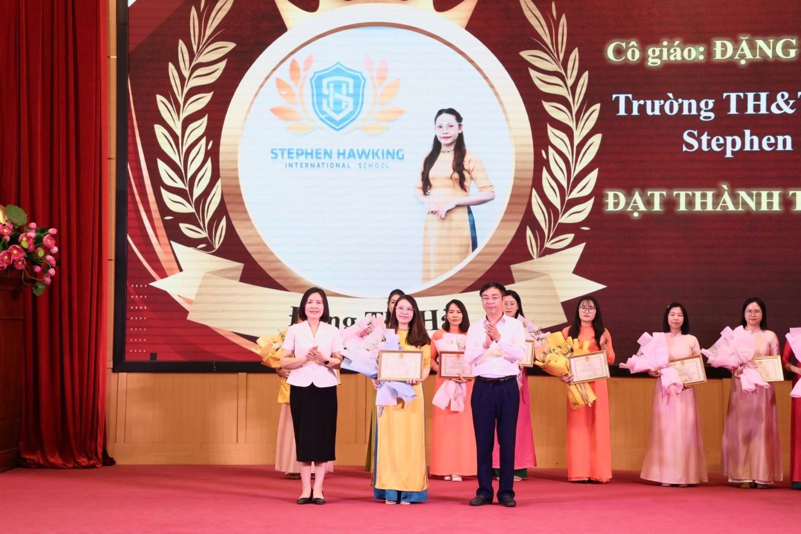 Khen thưởng giáo viên đạt thành tích xuất sắc tại Hội thi.