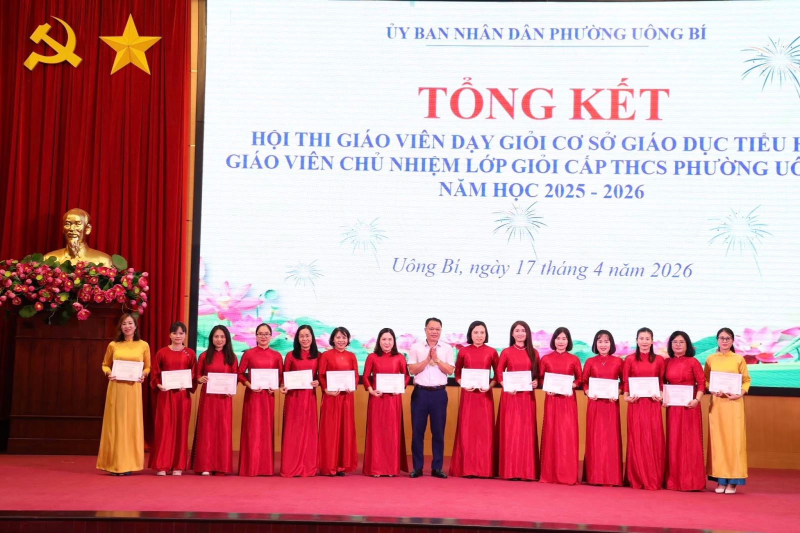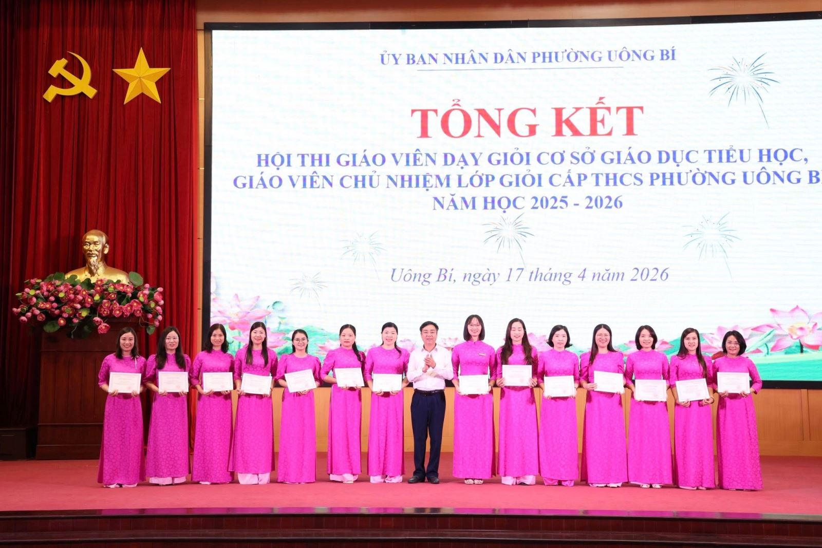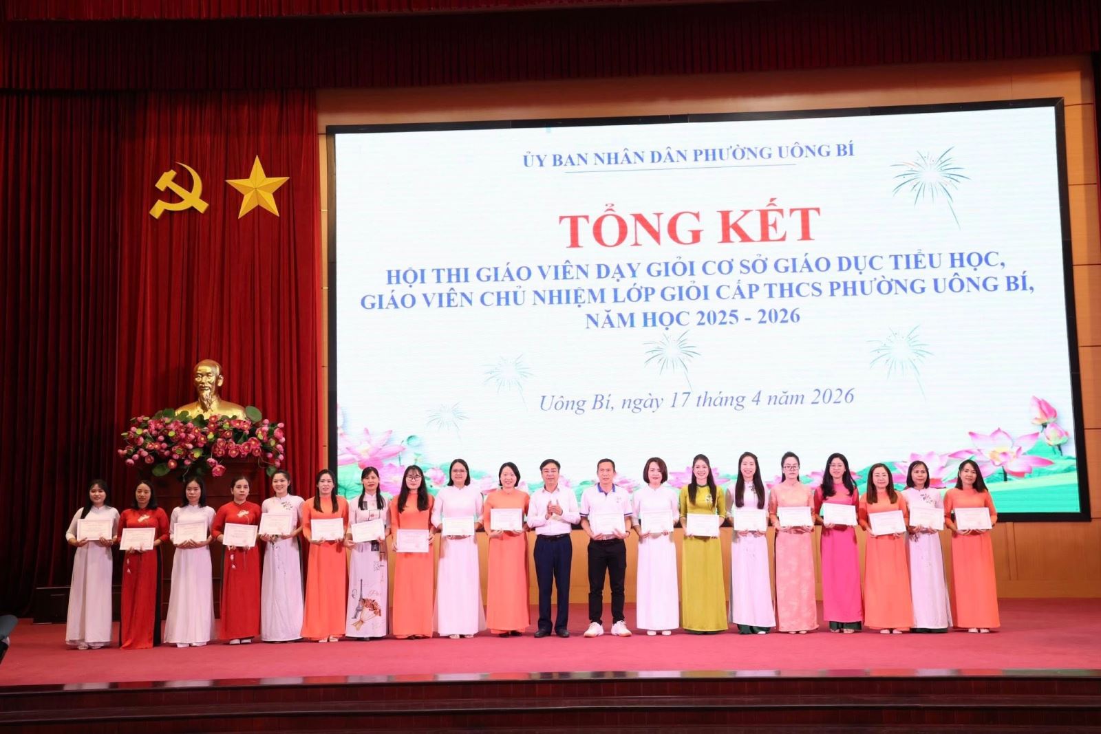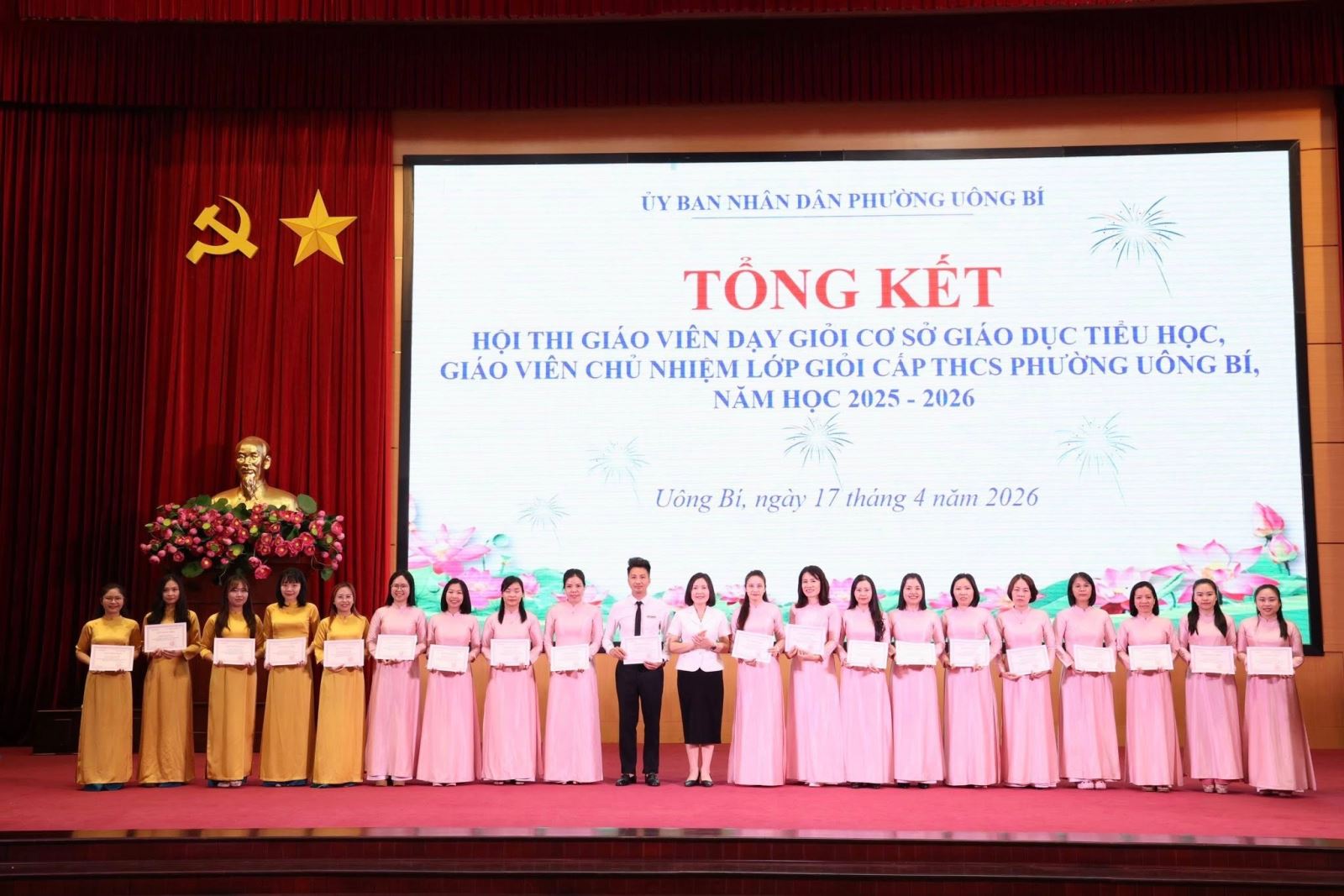 Ngày 17/4/2026, UBND phường Uông Bí tổ chức Hội nghị tổng kết Hội thi giáo viên dạy giỏi cơ sở giáo dục Tiểu học và giáo viên chủ nhiệm lớp giỏi THCS năm học 2025–2026.