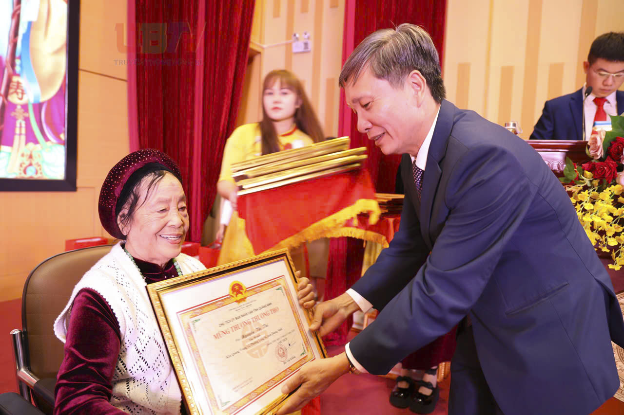 - Lãnh đạo phường Uông Bí trao thiệp mừng thượng thượng thọ tròn 101 tuổi cho Mẹ Việt Nam Anh hùng Hoàng Thị Nghi