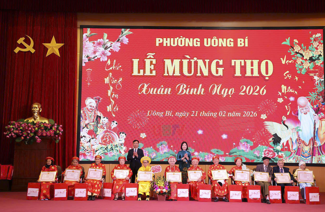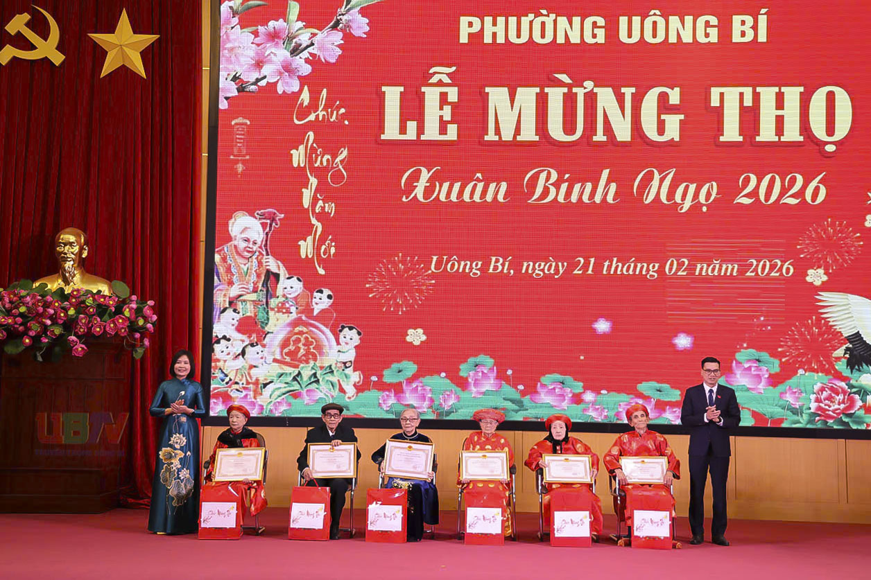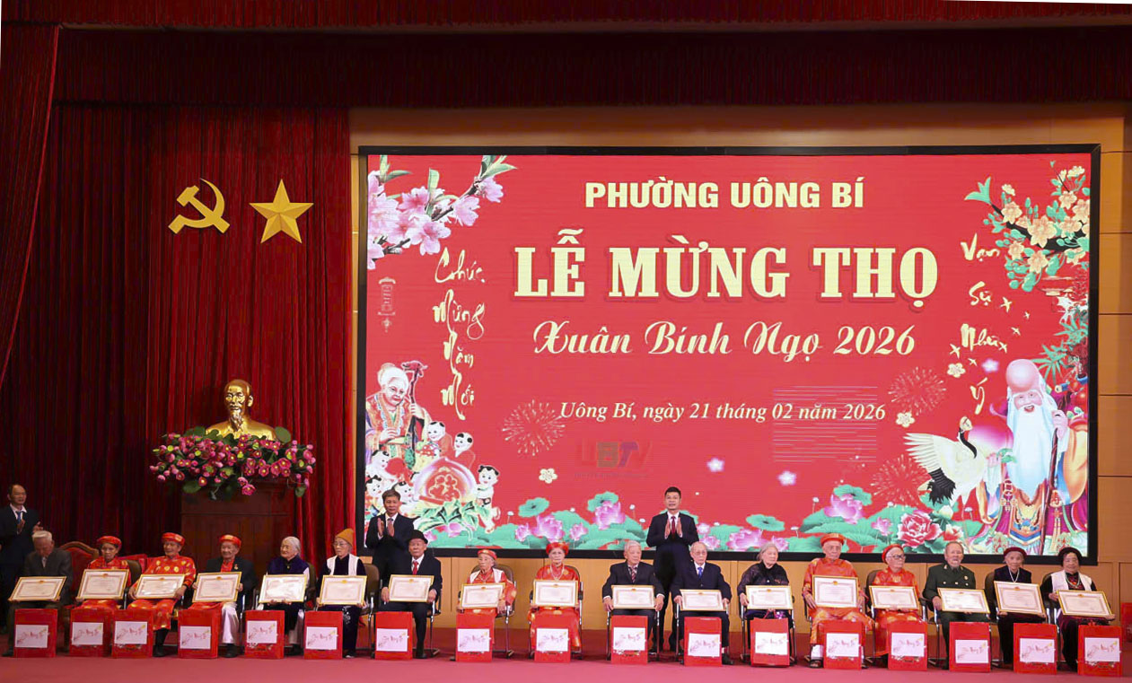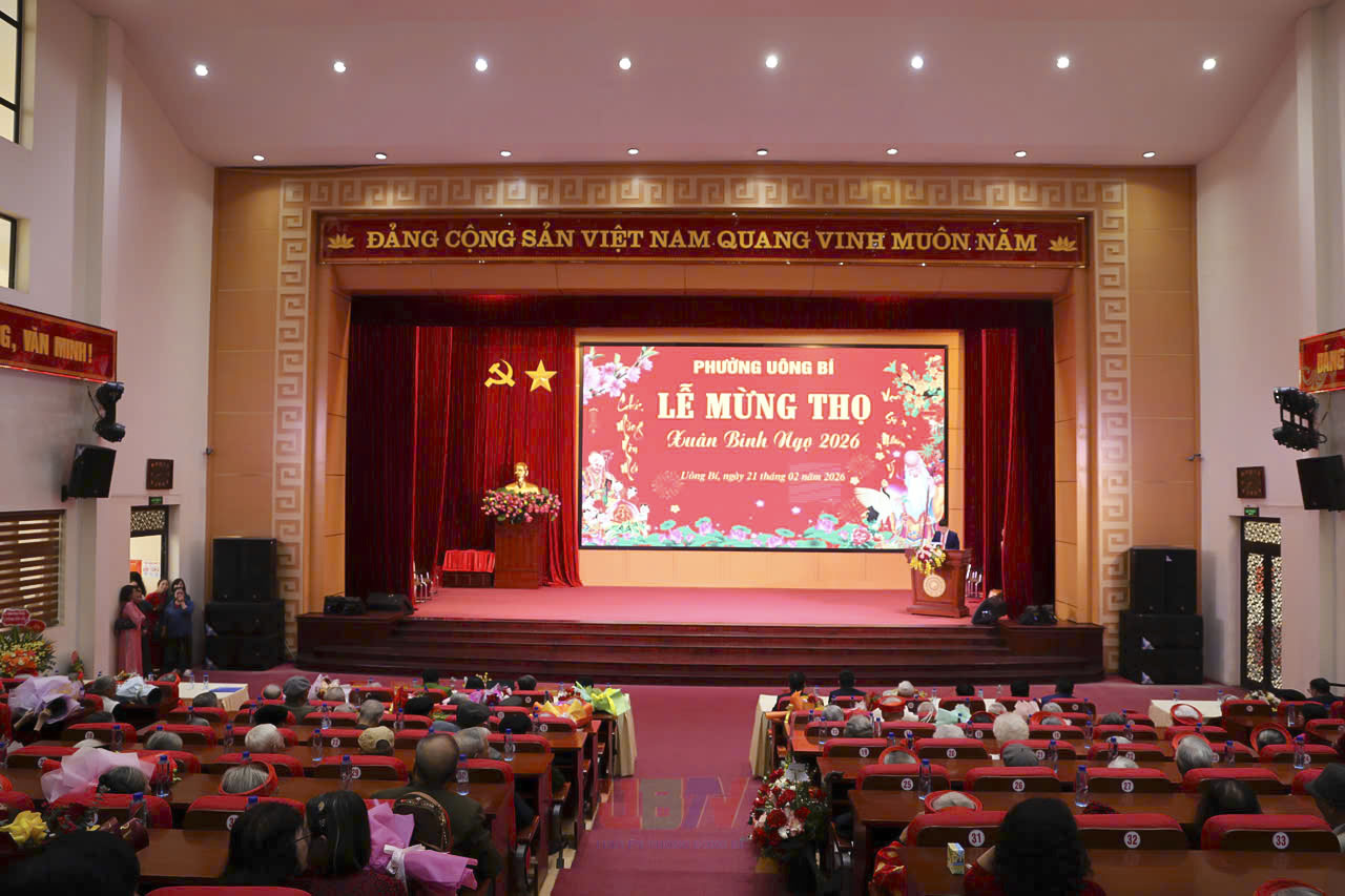 Sáng ngày 21/2 (tức mùng 5 Tết Bính Ngọ), phường Uông Bí đã long trọng tổ chức Lễ mừng thọ Xuân Bính Ngọ năm 2026, tôn vinh và chúc thọ các cụ cao tuổi trên địa bàn.