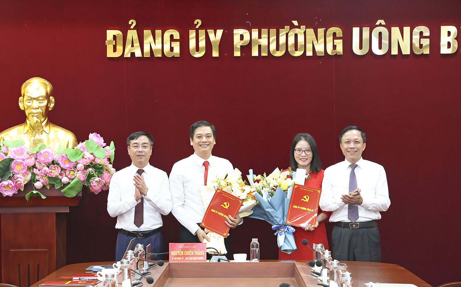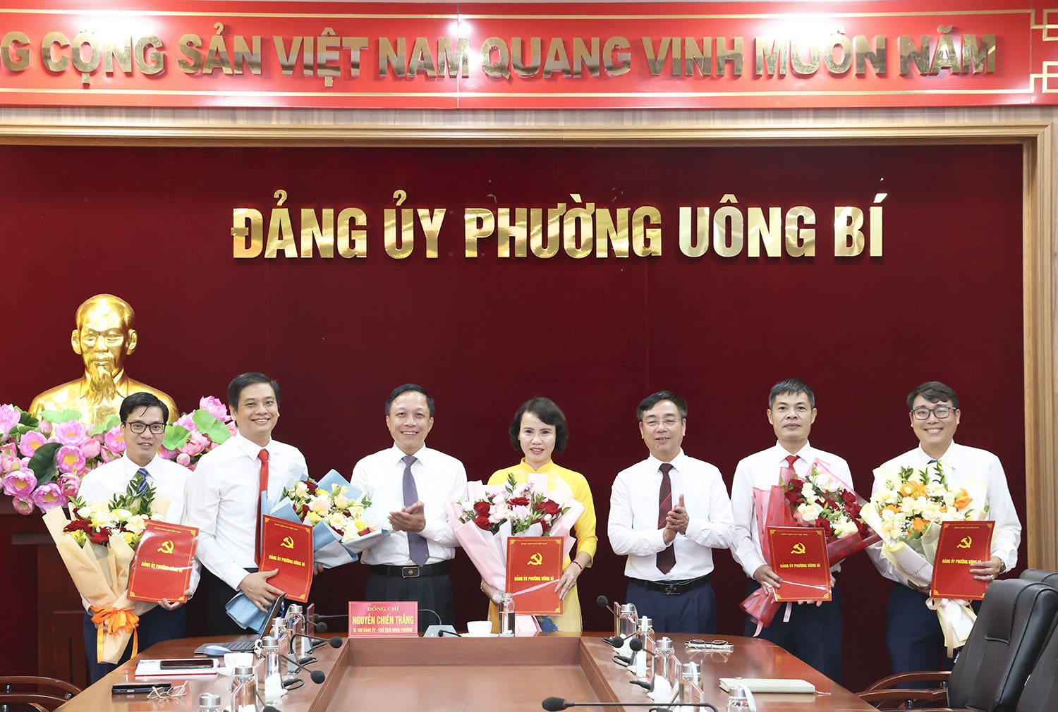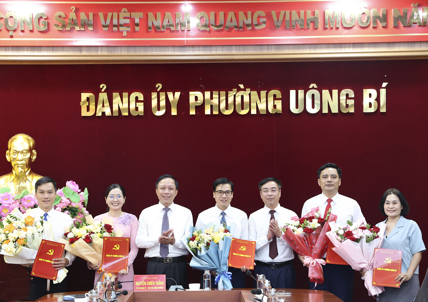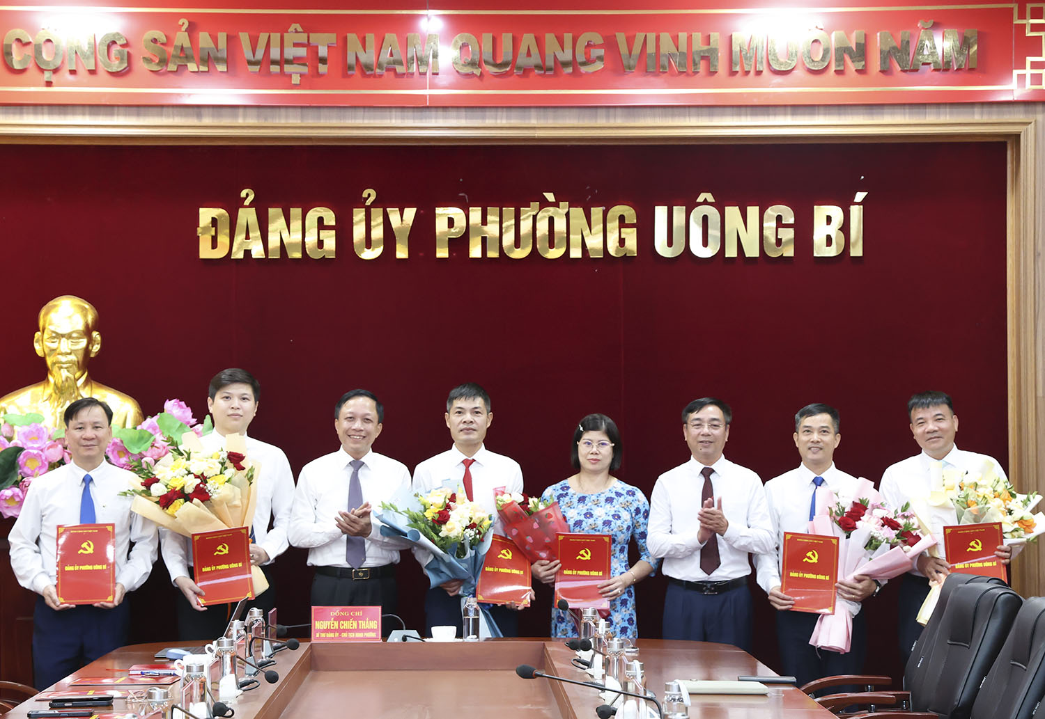 Đồng thời, công bố các quyết định tiếp nhận, bổ nhiệm và chỉ định cán bộ giữ chức vụ tại các cơ quan chuyên trách, cụ thể: đồng chí Bùi Tiến Hưng giữ chức Chủ nhiệm Ủy ban Kiểm tra Đảng ủy phường đồng chí Trần Thị Hường giữ chức Trưởng Ban Xây dựng Đảng; đồng chí Nguyễn Hồng Quang giữ chức Chủ tịch Ủy ban MTTQ Việt Nam phường; đồng chí Trần Văn Giầu giữ chức Chánh Văn phòng Đảng ủy phường; đồng chí Nguyễn Quang Nghĩa giữ chức Giám đốc Trung tâm chính trị Uông Bí.