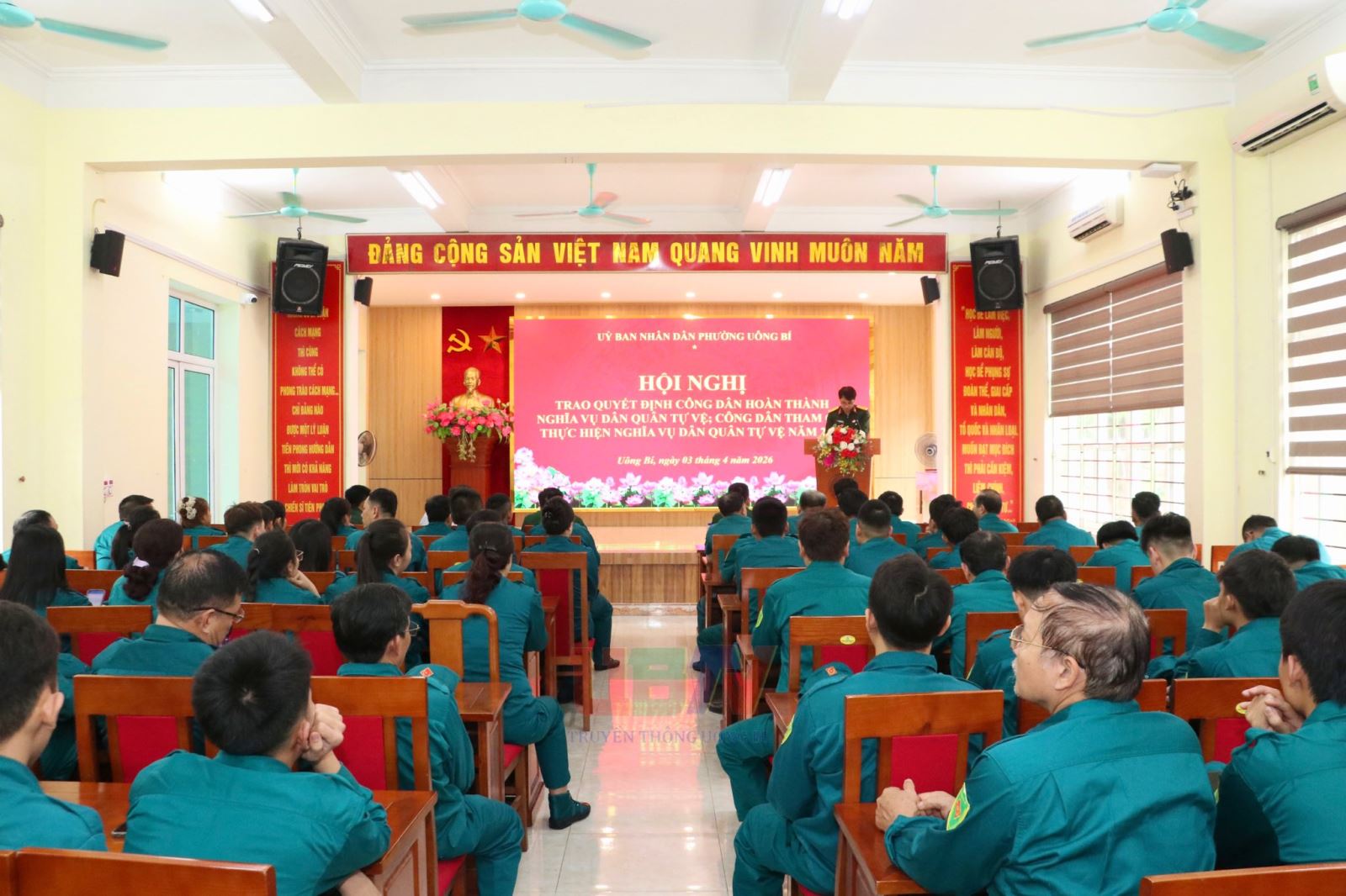 Chiều ngày 3/4, UBND phường Uông Bí tổ chức trao quyết định công dân tham gia thực hiện nghĩa vụ Dân quân tự vệ năm 2026 và công dân hoàn thành nghĩa vụ Dân quân tự vệ. Uông Bí là đơn vị đầu tiên trong toàn tỉnh thực hiện hoạt động này.