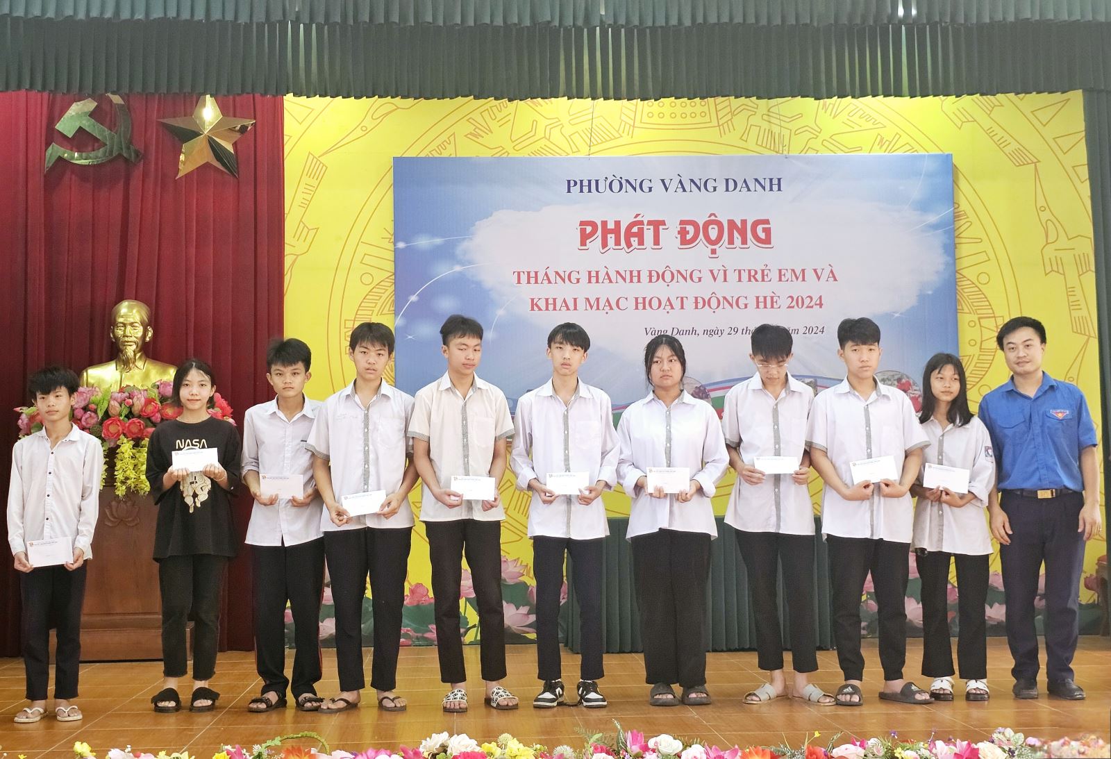 Trong chương trình, phường Vàng Danh đã trao tặng 11 suất quà cho trẻ em có hoàn cảnh khó khăn trên địa bàn, mỗi suất trị giá 500 nghìn đồng; Đoàn Thanh niên phường cũng trao tặng 10 suất quà nhằm động viên, khích lệ các em học sinh có hoàn cảnh khó khăn tham gia Kỳ thi tuyển sinh vào lớp 10 THPT năm học 2024-2025.