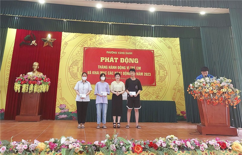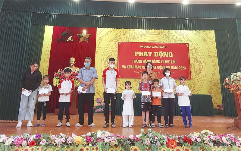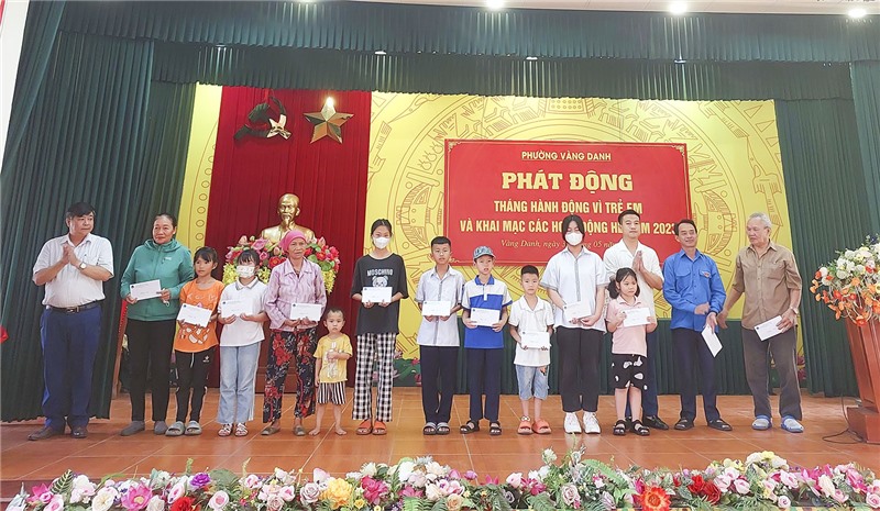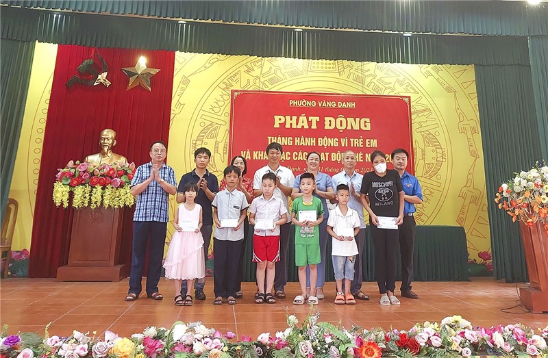 Tại lễ phát động, đồng chí Đào Ngọc Sơn, Uỷ viên BTV, Trưởng Ban Dân vận Thành ủy, Chủ tịch UBMTTQ thành phố đã tặng quà cho trẻ em phường Vàng Danh nhân Ngày Quốc tế thiếu nhi 1/6. Nhân dịp này, Đảng Ủy - HĐND - UBND - UBMTTQ phường Vàng Danh cùng các cơ quan, doanh nghiệp, các nhà hảo tâm đã trao tặng các phần quà bằng tiền mặt và hiện vật cho những trẻ em có hoàn cảnh khó khăn trên địa bàn. Ngoài ra, các em học sinh có thành tích xuất sắc, đạt giải cao tại các kỳ thi cũng được địa phương quan tâm biểu dương khen thưởng tại chương trình.