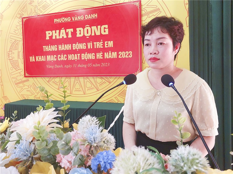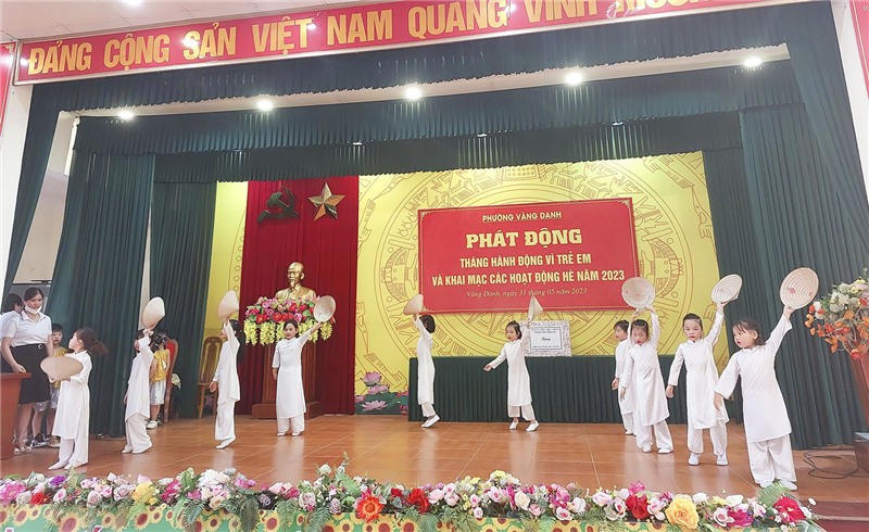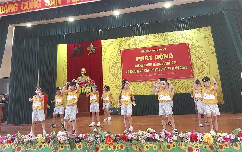 Nhân ngày Quốc tế thiếu nhi 1/6, hưởng ứng Tháng hành động vì trẻ em năm 2023, chiều ngày 31/05, UBND phường Vàng Danh tổ chức Lễ phát động Tháng hành động vì trẻ em và khai mạc hoạt động hè năm 2023, đồng chí Đào Ngọc Sơn, Uỷ viên BTV, Trưởng Ban Dân vận Thành ủy, Chủ tịch UBMTTQ thành phố dự chương trình.