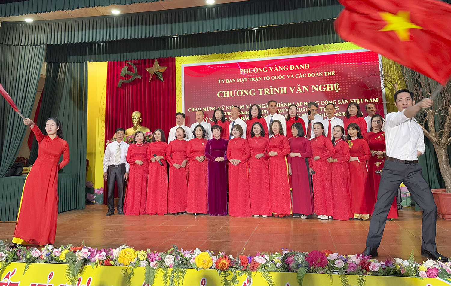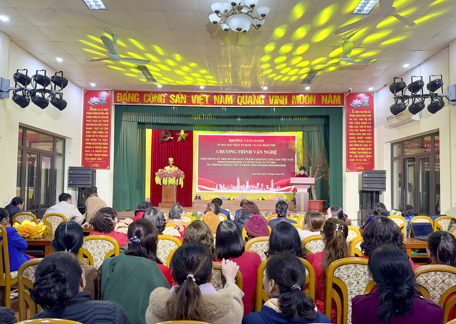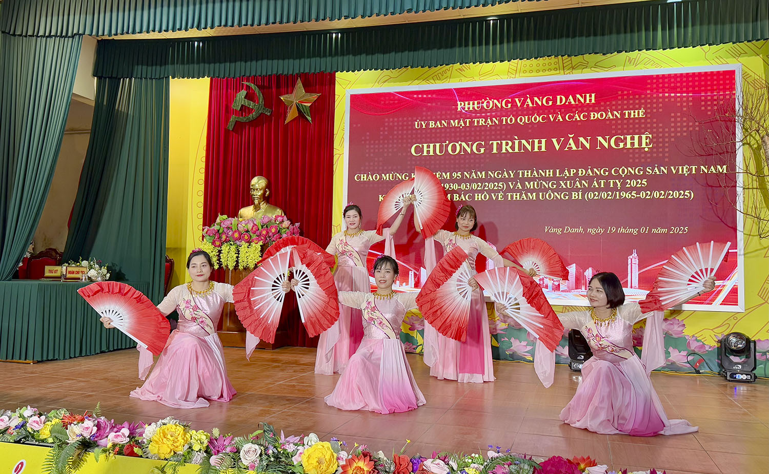 Tối ngày 19/1, phường Vàng Danh đã tổ chức Chương trình nghệ thuật mừng Đảng, mừng Xuân Ất Tỵ năm 2025, nhân dịp kỷ niệm 95 năm Ngày thành lập Đảng Cộng sản Việt Nam 3/2 và 60 năm Bác Hồ về thăm Uông Bí 2/2. Dự chương trình có các đồng chí lãnh đạo Đảng ủy, UBND, Uỷ ban MTTQ phường và đông đảo nhân dân trên địa bàn.