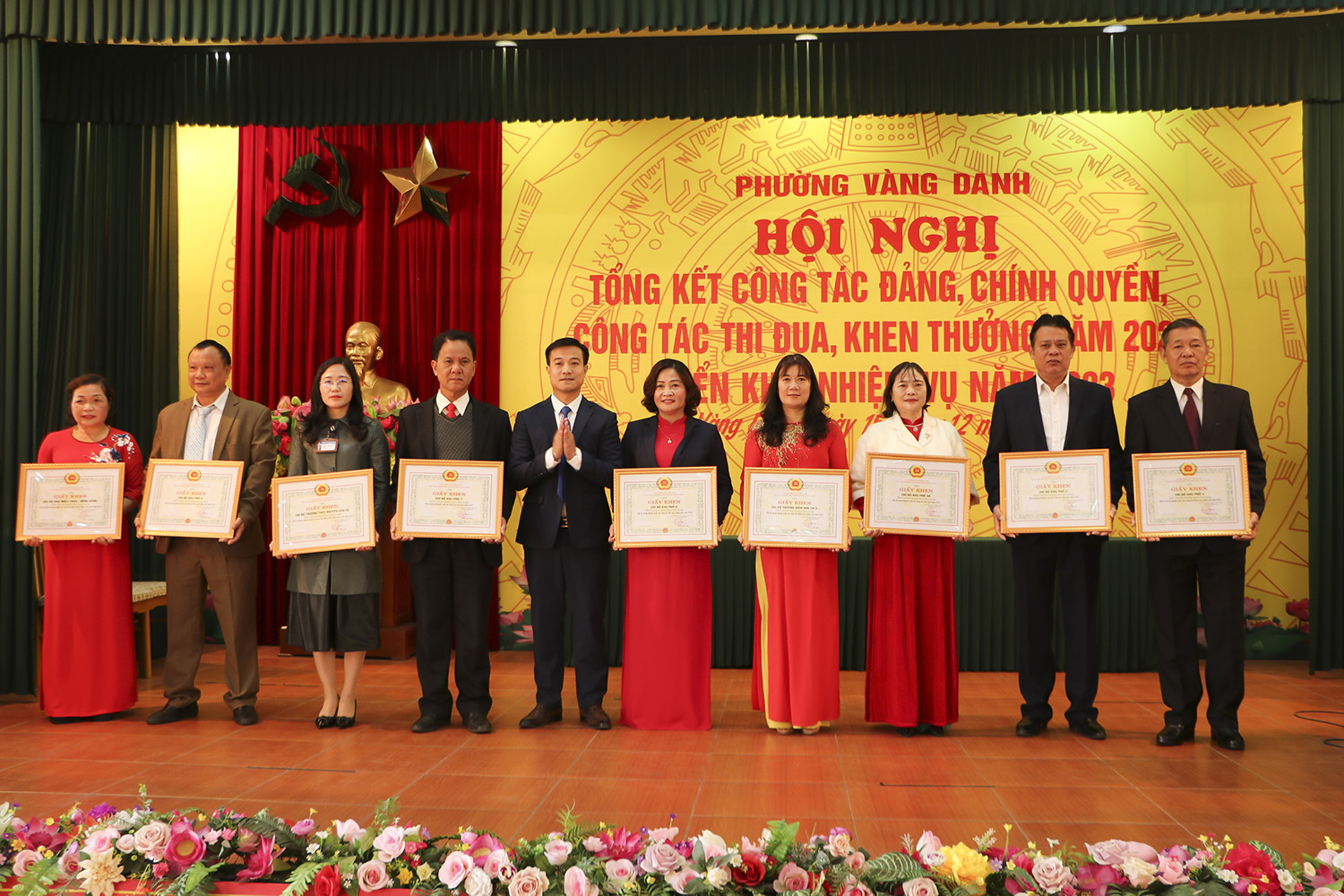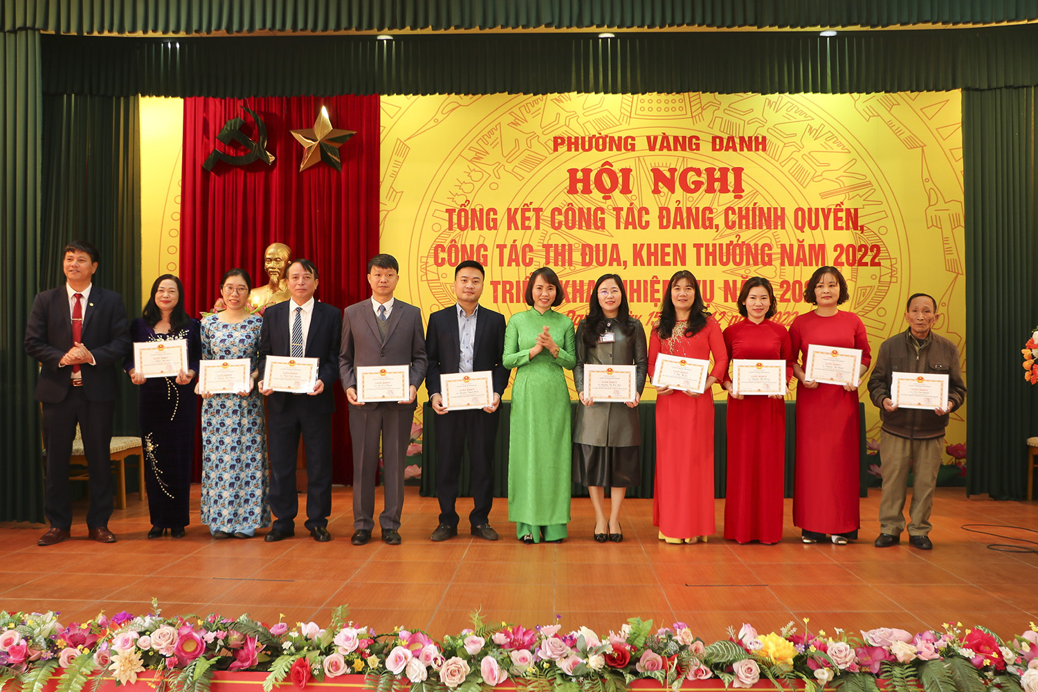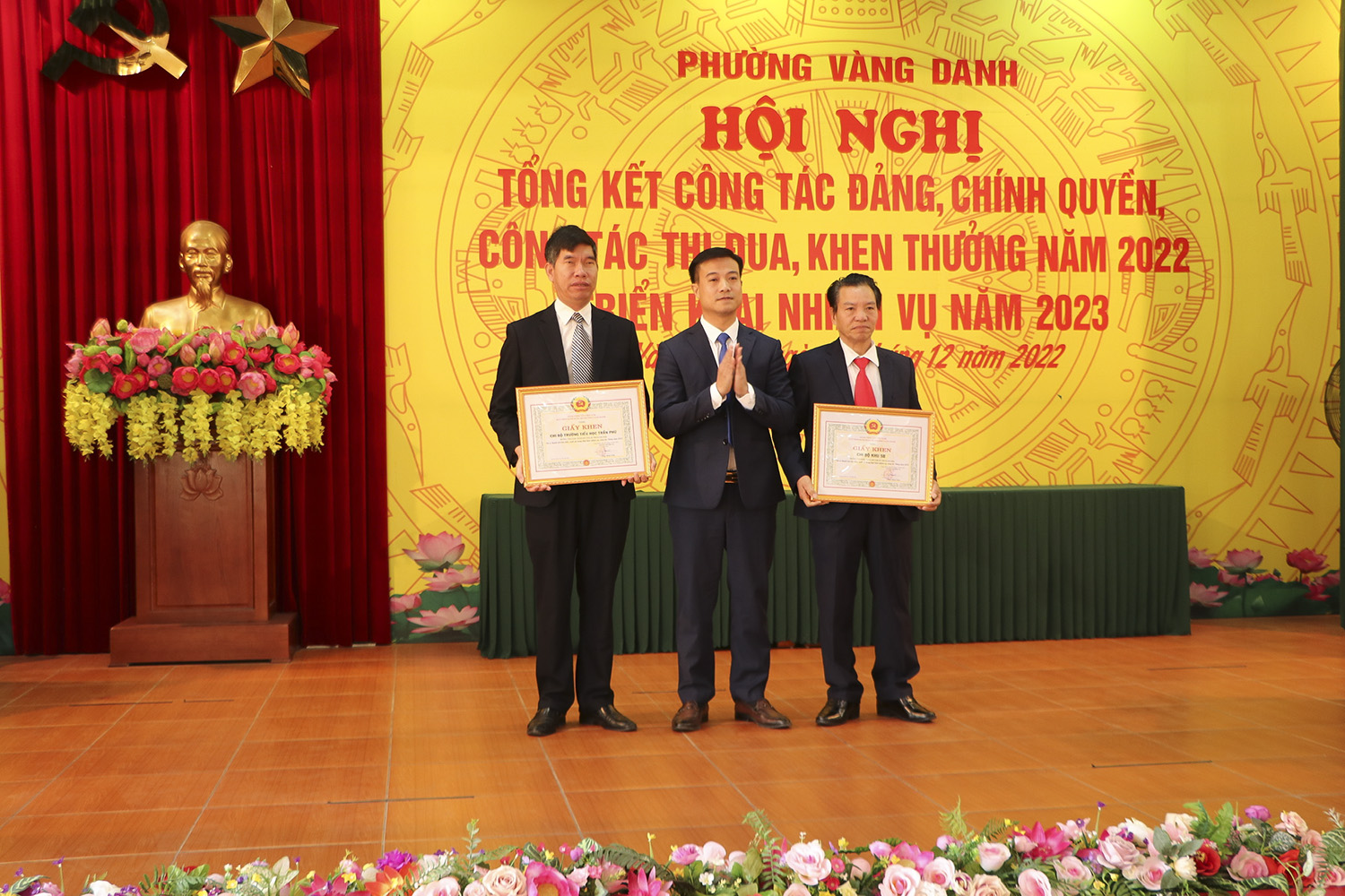Nhân dịp này, Đảng uỷ phường đã khen thưởng 2 chi bộ, 58 đảng viên hoàn thành xuất sắc nhiệm vụ năm 2022; khen thưởng 8 đảng viên hoàn thành xuất sắc nhiệm vụ 5 năm liền giai đoạn 2018-2022; UBND phường khen thưởng 7 tập thể, 22 cá nhân, 71 hộ gia đình có thành tích xuất sắc trong phong trào thi đua năm 2022.