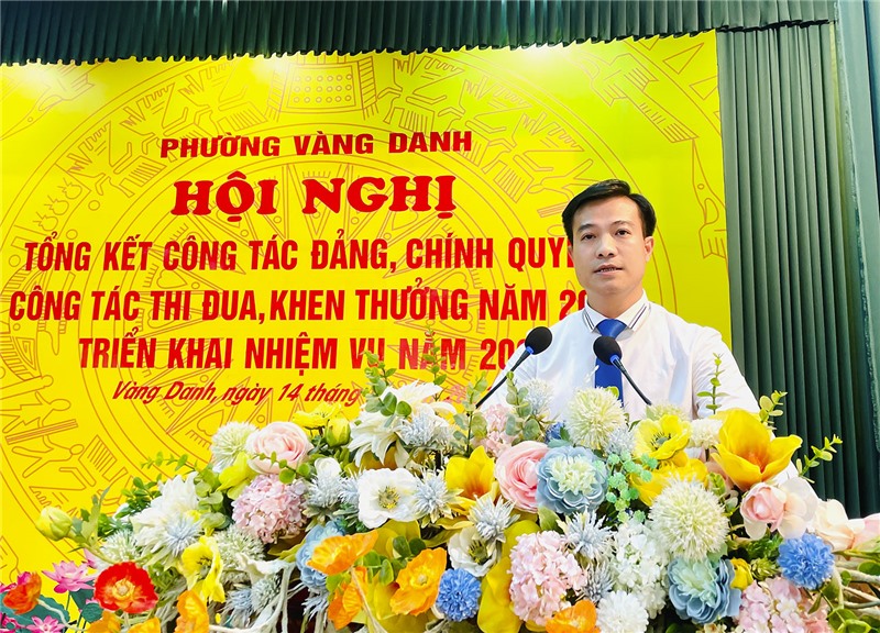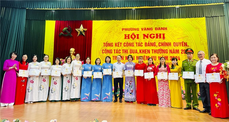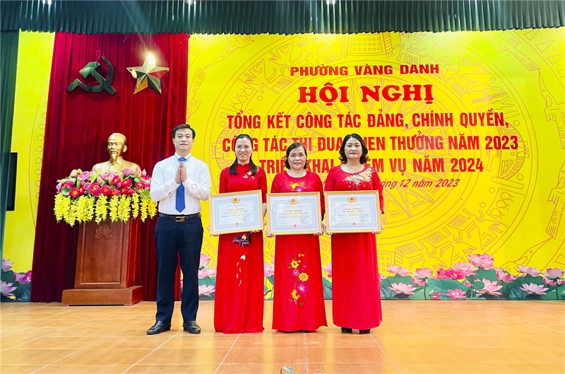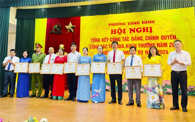 Tại hội nghị, UBND phường Vàng Danh đã phát động phong trào và tổ chức ký giao ước thi đua năm 2024. Nhân dịp này, Đảng ủy và UBND phường đã khen thưởng cho các tập thể, cá nhân, gia đình văn hoá tiêu biểu có thành tích xuất sắc trong công tác Đảng, Chính quyền, thi đua khen thưởng năm 2023.