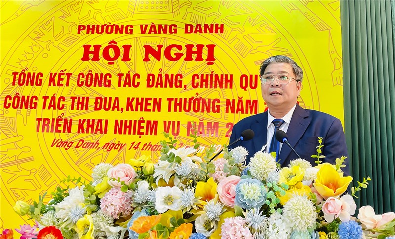 Chiều 14/12, Phường Vàng Danh tổ chức Hội nghị tổng kết công tác Đảng, Chính quyền, công tác thi đua, khen thưởng năm 2023; triển khai nhiệm vụ năm 2024. Dự, chỉ đạo có đồng chí Nguyễn Văn Bích, Uỷ viên BTV, Trưởng Ban Tổ chức Thành ủy; đồng chí Trần Phi Long, Thành uỷ viên, Trưởng ban Pháp chế HĐND thành phố.