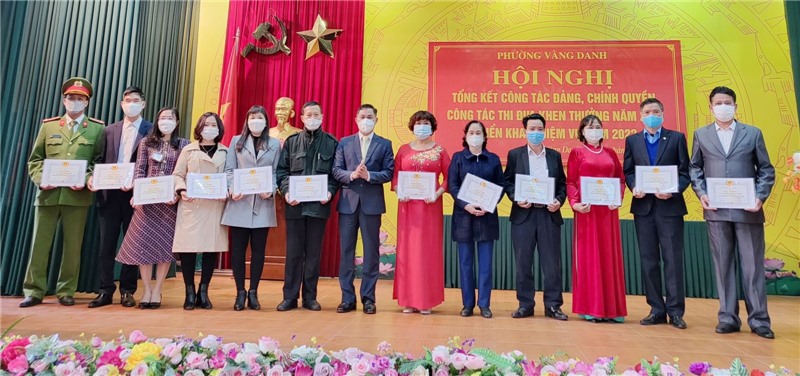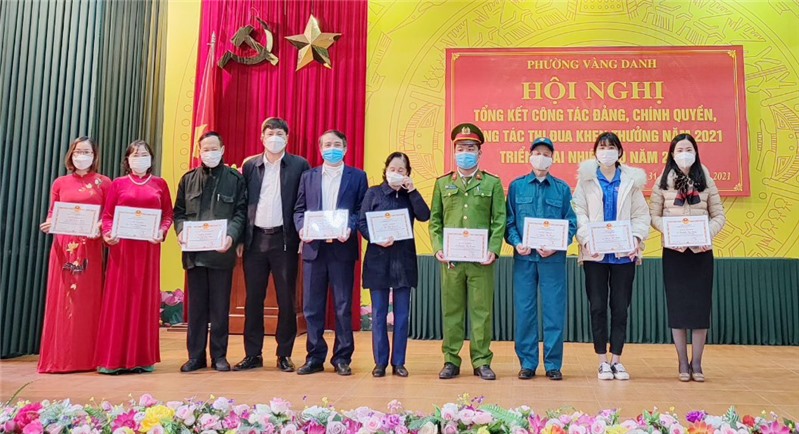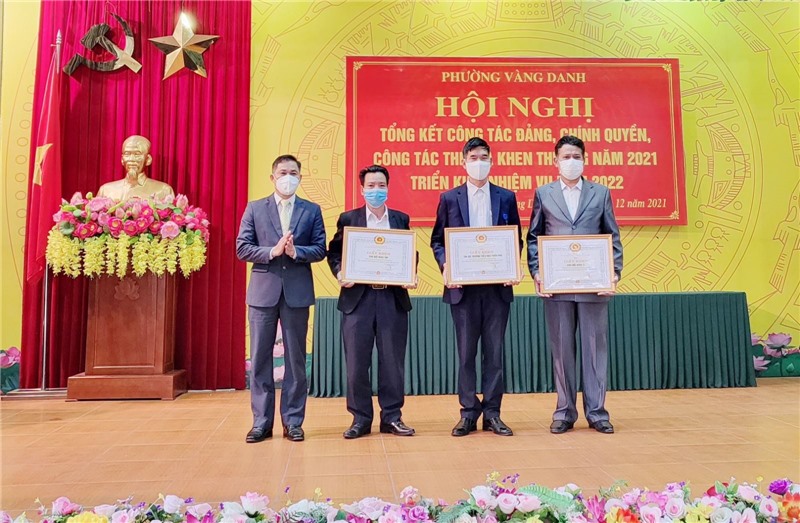Nhân dịp này, phường Vàng Danh đã biểu dương, khen thưởng các tập thể, cá nhân có thành tích xuất sắc trong thực hiện nhiệm vụ năm 2021 và phát động thi đua năm 2022.