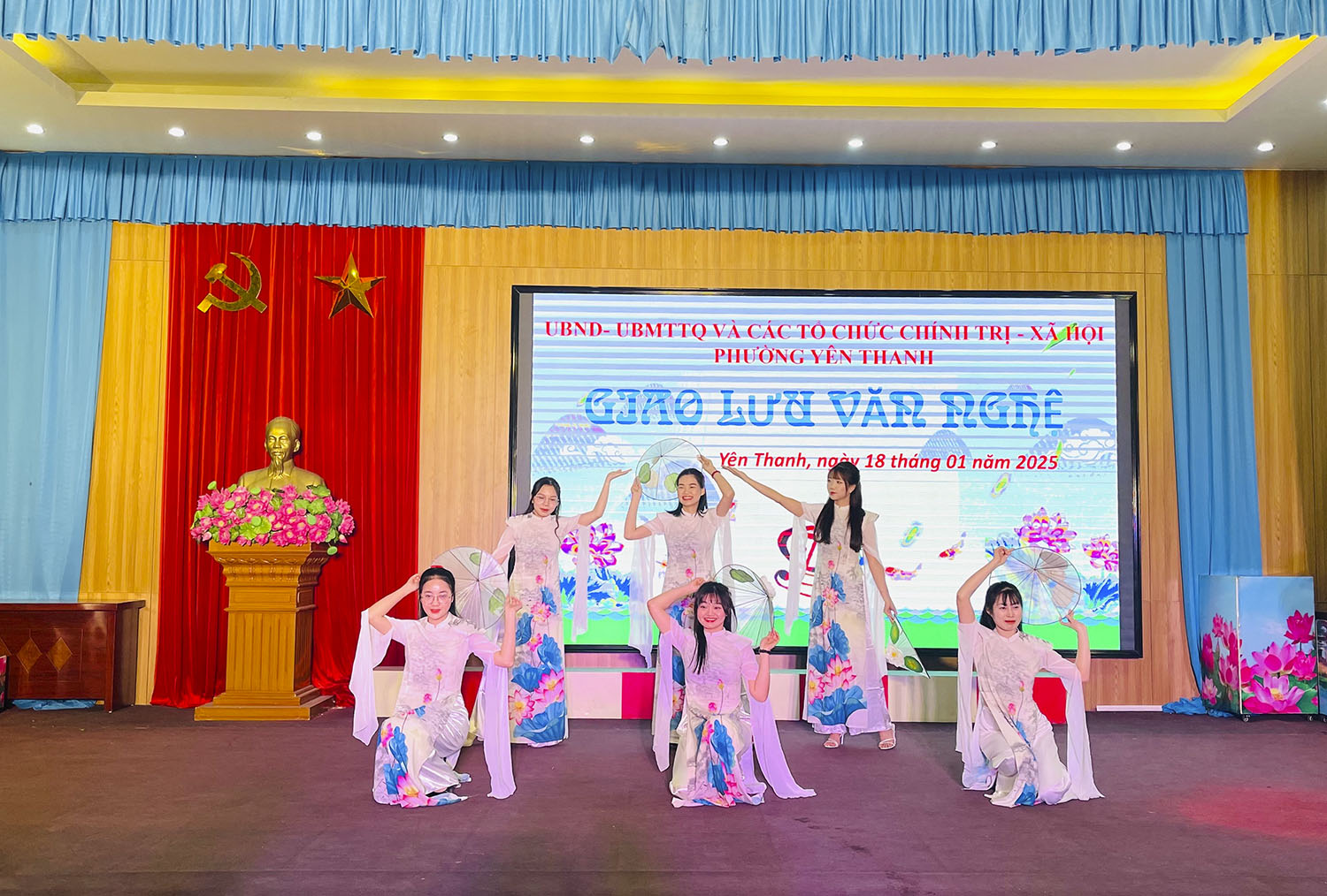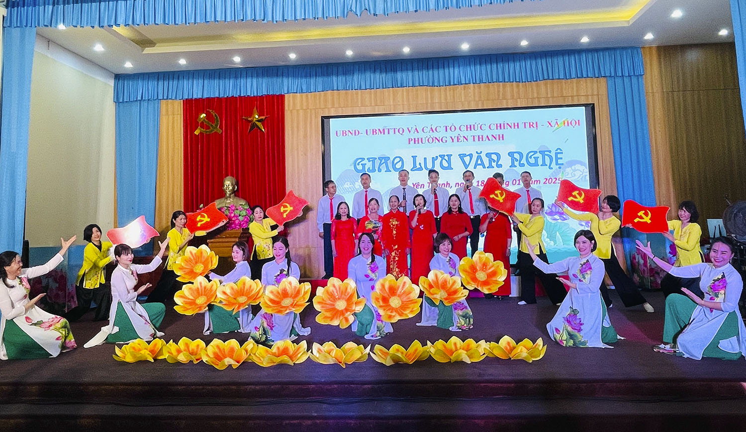 Ngày 18/1, UBND phường Yên Thanh phối hợp với Ủy ban MTTQ và các tổ chức chính trị - xã hội phường tổ chức Chương trình giao lưu văn nghệ chào mừng Kỷ niệm 60 năm Bác Hồ về thăm Uông Bí, 95 năm ngày thành lập Đảng Cộng sản Việt Nam, 14 năm ngày thành lập thành phố Uông Bí và chào mừng thành công Đại hội các chi bộ trực thuộc Đảng bộ phường, hướng đến Đại hội Đảng các cấp nhiệm kỳ 2025 - 2030 và đón Tết Nguyên đán Ất Tỵ 2025.