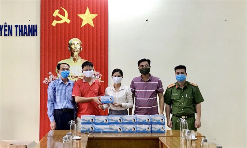 Đại diện doanh nghiệp ủng hộ vật tư y tế phục vụ công tác phòng, chống dịch Covid - 19 tại địa phương.