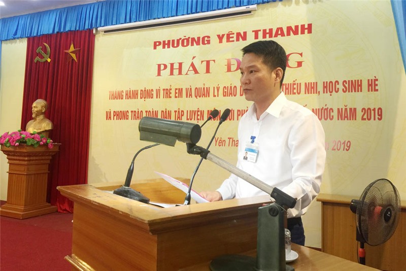Lãnh đạo phường Yên Thanh phát động Tháng hành động vì trẻ em và quản lý giáo dục thanh thiếu nhi, học sinh hè; phong trào toàn dân tập luyện môn bơi, phòng chống đuối nước 2019.