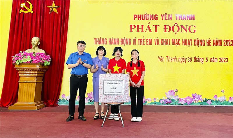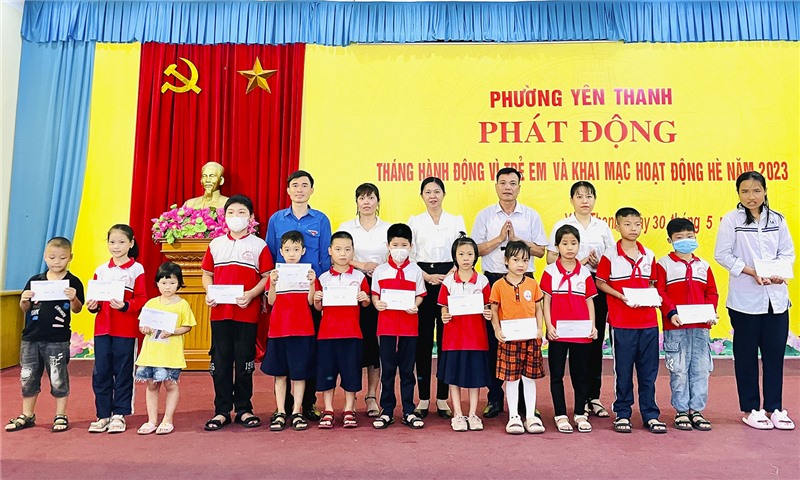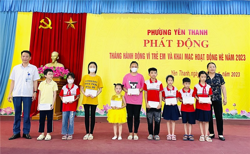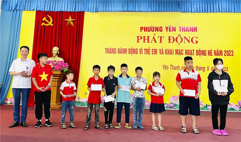 Ngày 30/5, phường Yên Thanh tổ chức chương trình phát động Tháng hành động vì trẻ em và khai mạc hoạt động hè năm 2023. Tới dự có các đồng chí: Trần Văn Giàu, Bí thư Thành đoàn; Nguyễn Thị Mai Hạnh, Phó Phòng Lao động – Thương binh & Xã hội thành phố.