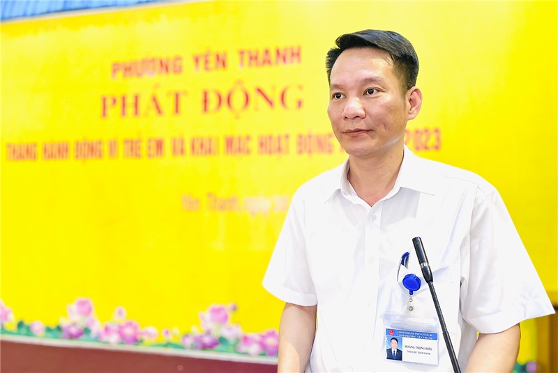 Lãnh đạo UBND phường Yên Thanh phát động Tháng hành động vì trẻ em năm 2023.