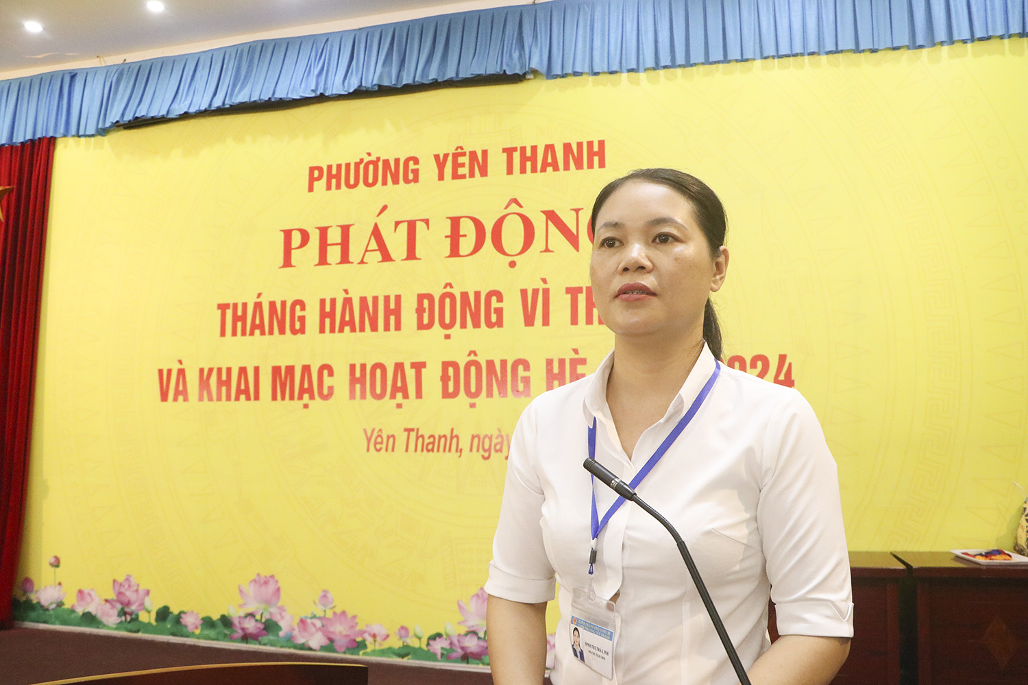 Trong tháng hành động vì trẻ em và hoạt động quản lý giáo dục thanh thiếu nhi, phường Yên Thanh sẽ phối hợp tổ chức các buổi tuyên truyền nâng cao kiến thức; kỹ năng bảo vệ, chăm sóc trẻ em; phòng, chống bạo lực, xâm hại và tai nạn thương tích đối với trẻ em; giáo dục đạo đức, lối sống, kỹ năng tương tác, kỹ năng phòng chống bạo lực, xâm hại tình dục trẻ em; kỹ năng bơi cứu đuối cho trẻ, trong đó ưu tiên trẻ em có hoàn cảnh khó khăn.