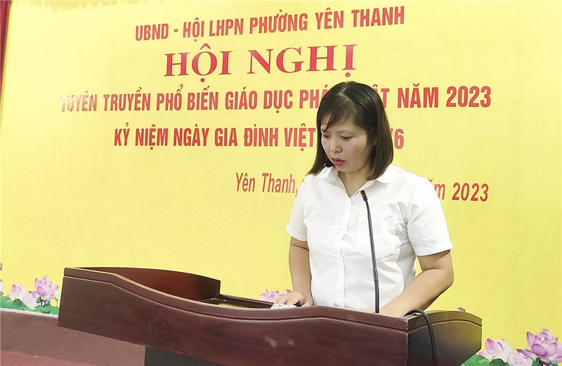 Ngày 23/6, UBND phường Yên Thanh phối hợp với Hội LHPN phường tổ chức Hội nghị tuyên truyền phổ biến giáo dục pháp luật năm 2023 và kỷ niệm Ngày Gia đình Việt Nam 28/6.