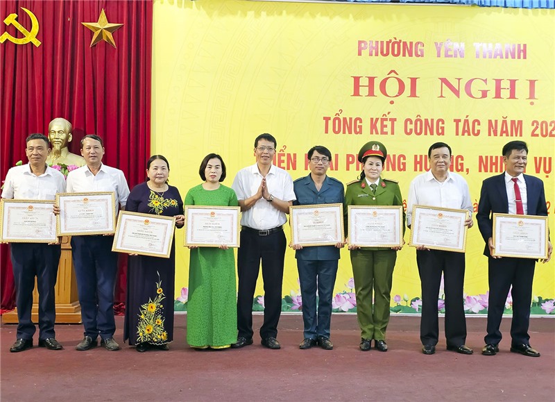 Đảng ủy, UBND phường Yên Thanh đã biểu dương, tặng giấy khen cho các tập thể, cá nhân có thành tích xuất sắc trong công tác năm 2023.
