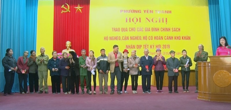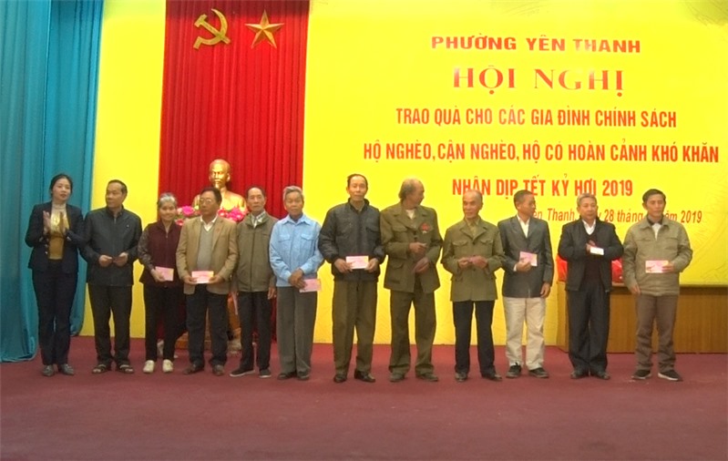 Ngày 28-1, UBND phường Yên Thanh tổ chức trao quà Tết cho các gia đình chính sách, hộ nghèo, cận nghèo và hộ có hoàn cảnh khó khăn nhân dịp Tết Nguyên đán Kỷ Hợi năm 2019.