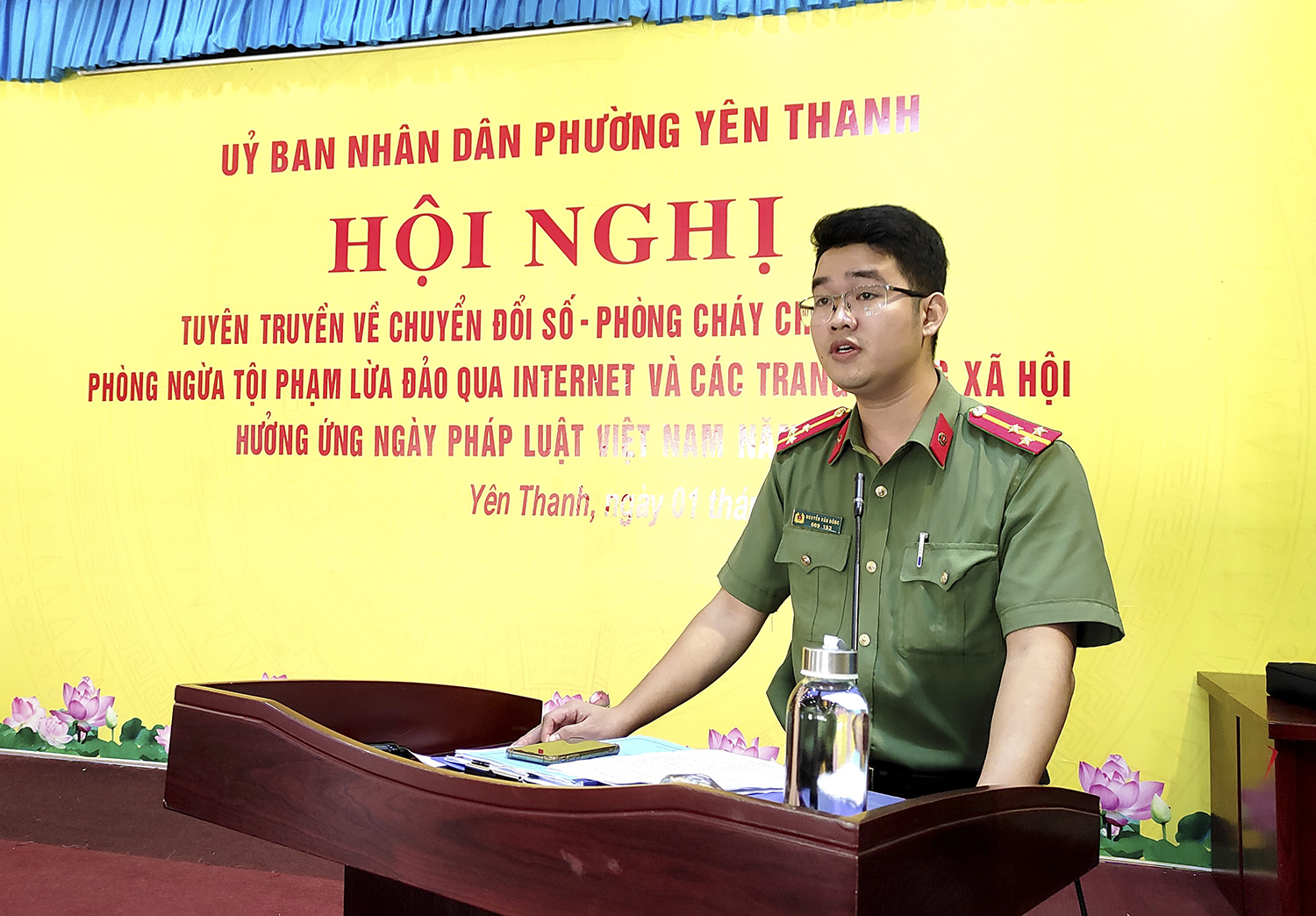 Thiết thực hưởng ứng Ngày pháp luật Việt Nam 9/11, phường Yên Thanh tổ chức hội nghị tuyên truyền về chuyển đổi số, phòng cháy chữa cháy, phòng ngừa tội phạm lừa đảo qua Internet và các trang mạng xã hội. Tham dự chương trình có lãnh đạo Đảng ủy, HĐND, UBND, MTTQ, các đoàn thể chính trị - xã hội phường và đông đảo Nhân dân trên địa bàn.