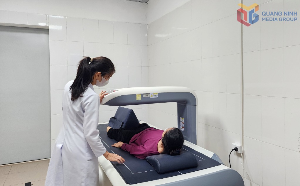 Đo mật độ xương bằng phương pháp hiện đại cho người cao tuổi khám bệnh tại Trung tâm y tế Đầm Hà.