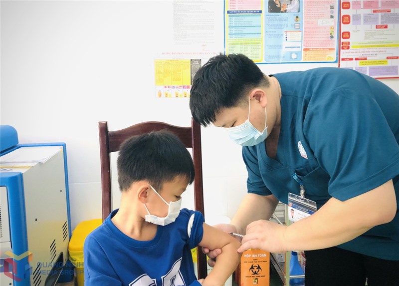 Tiêm vắc-xin phòng bệnh cho trẻ tại TTYT huyện Bình Liêu.
